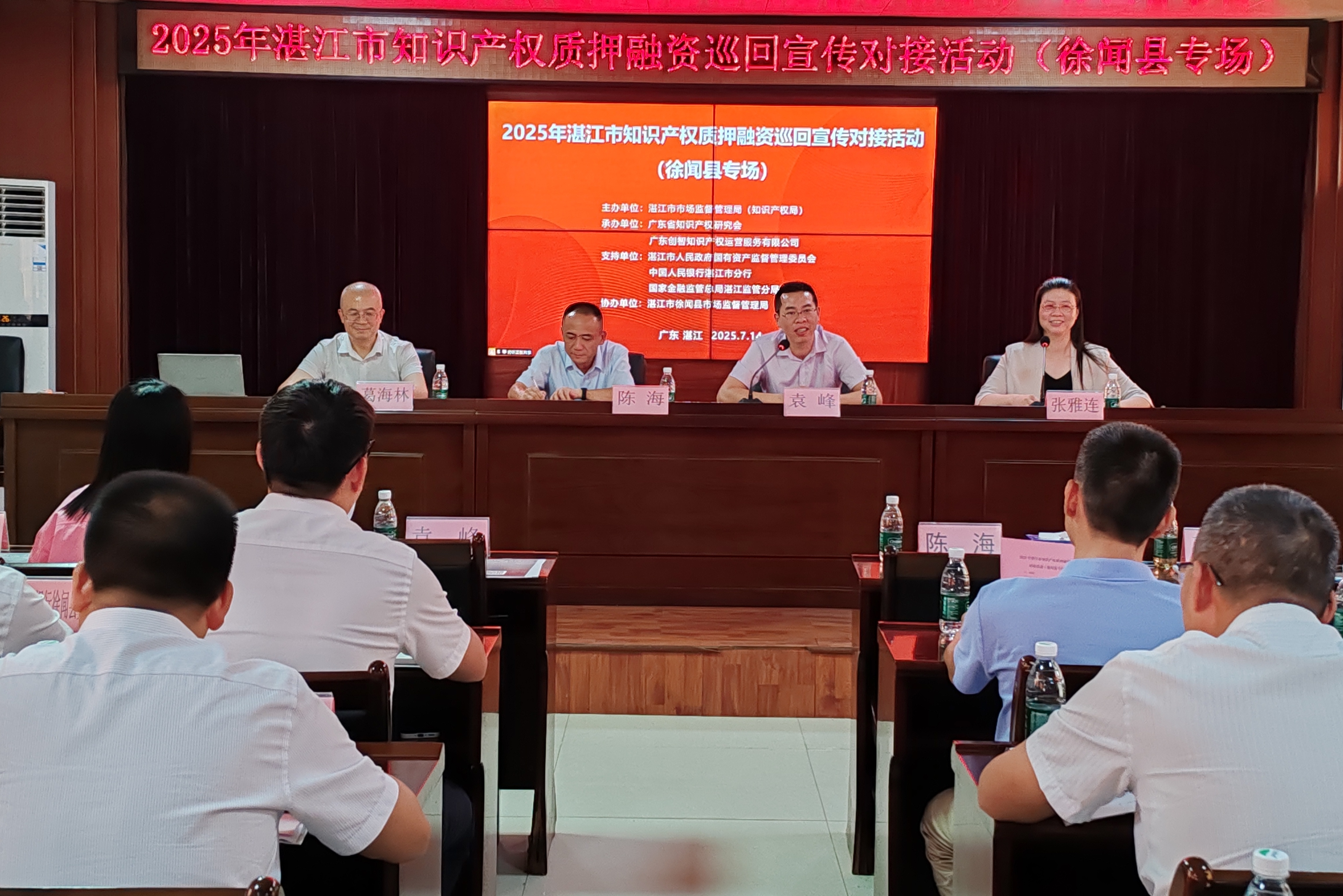 7月14日下午,由湛江市市場監(jiān)督管理局(知識產(chǎn)權(quán)局)主辦,廣東省知識產(chǎn)權(quán)研究會、廣東創(chuàng)智知識產(chǎn)權(quán)運(yùn)營服務(wù)有限公司承辦,徐聞縣市場監(jiān)督管理局協(xié)辦的“2025年湛江市知識產(chǎn)權(quán)質(zhì)押融資巡回宣傳對接活動(徐聞縣專場)”在徐聞縣順利舉行。 活動得到了湛江市人民政府國有資產(chǎn)監(jiān)督管理委員會、中國人民銀行湛江市分行、國家金融監(jiān)督管理總局湛江監(jiān)管分局的大力支持。