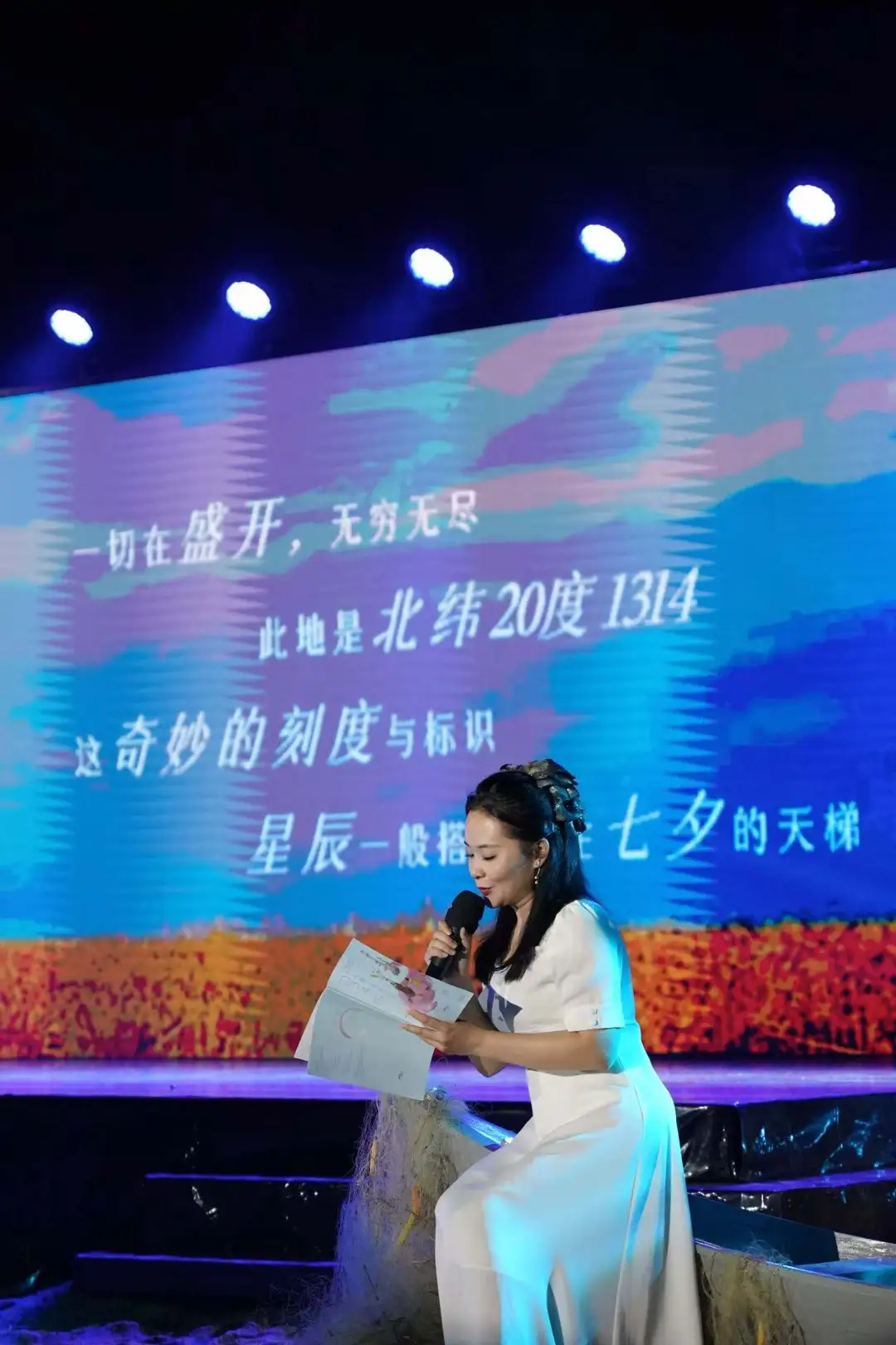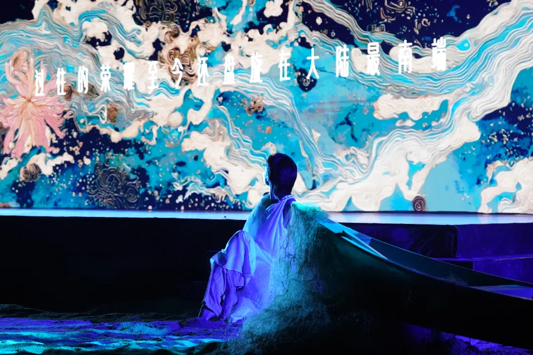 暮色漸濃時,520主題晚會正式開場。演出以潮汐、珊瑚、漁火等海洋元素為靈感,通過【極南之戀·潮汐情書】【極藍之憶·海絲秘語】【極靜之詩·漁火星辰】【極燃之約·愛的飄帶】等四個篇章及燈光秀表演,編織一場跨越時空的浪漫故事,讓大陸南極世界愛情角與現(xiàn)代舞蹈、現(xiàn)代詩歌藝術(shù)和光影技術(shù)完美融合,讓觀眾仿佛置身于夢幻的海洋世界。