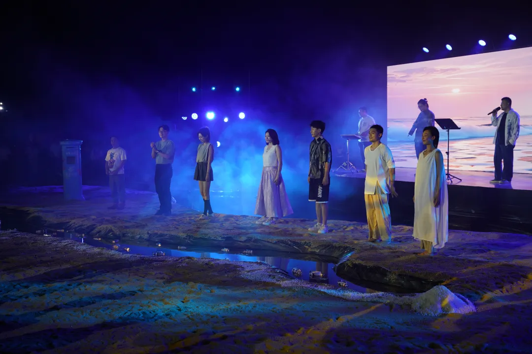 “沒想到在祖國大陸最南端能看到這么精彩的演出?!闭谟^看表演的海南游客王女士表示,燈光與海浪相映成趣,這種體驗獨一無二。文藝表演最后,在場歌手、舞者與嘉賓齊聚一堂舉行漂流瓶儀式,將《給大海的情書》放在水面上,向大海寄托心中的喜愛之情。