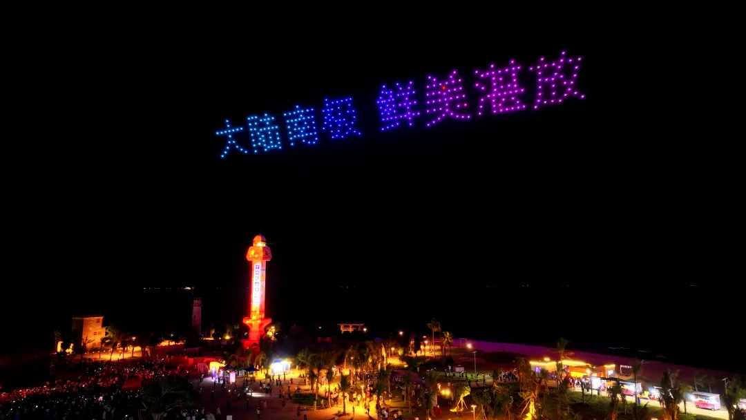 隨后,上百架無人機騰空而起在空中組成璀璨編隊,以天際為畫布,演繹唯美愛情故事,繪出“大陸南極 鮮美湛放”的字樣,為浪漫之夜畫上完美句點,引得觀眾陣陣歡呼。