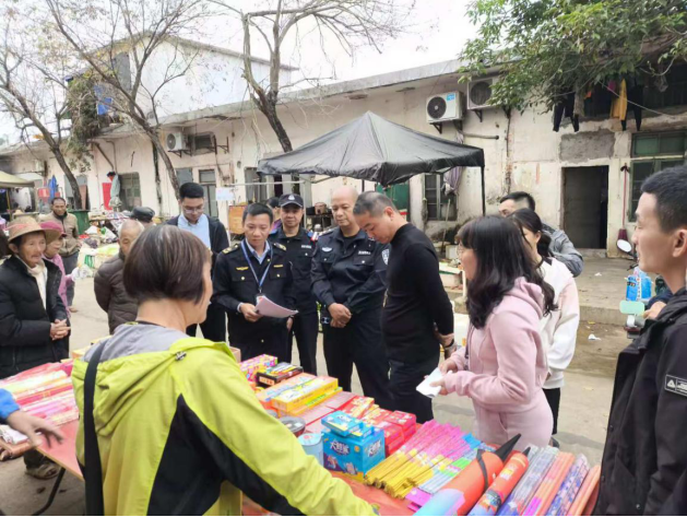 為深入貫徹落實(shí)縣安委辦印發(fā)《關(guān)于開(kāi)展煙花爆竹銷(xiāo)售旺季安全聯(lián)合執(zhí)法檢查工作的通知》精神,聚焦安全生產(chǎn)“防、救、新”三件事,科學(xué)統(tǒng)籌發(fā)展和安全,切實(shí)強(qiáng)化春節(jié)、元宵等重點(diǎn)時(shí)段煙花爆竹行業(yè)安全監(jiān)管和風(fēng)險(xiǎn)防控工作,確保全鎮(zhèn)煙花爆竹行業(yè)安全形勢(shì)持續(xù)穩(wěn)定向好。1月22日,我鎮(zhèn)在縣應(yīng)急局、市監(jiān)局檢查組到下洋鎮(zhèn)開(kāi)展煙花爆竹安全專(zhuān)項(xiàng)檢查時(shí),鎮(zhèn)常務(wù)副鎮(zhèn)長(zhǎng)莫碧玉聯(lián)合鎮(zhèn)規(guī)劃建設(shè)和應(yīng)急管理辦、執(zhí)法隊(duì)、派出所、消防站等部門(mén)相關(guān)人員配合檢查。