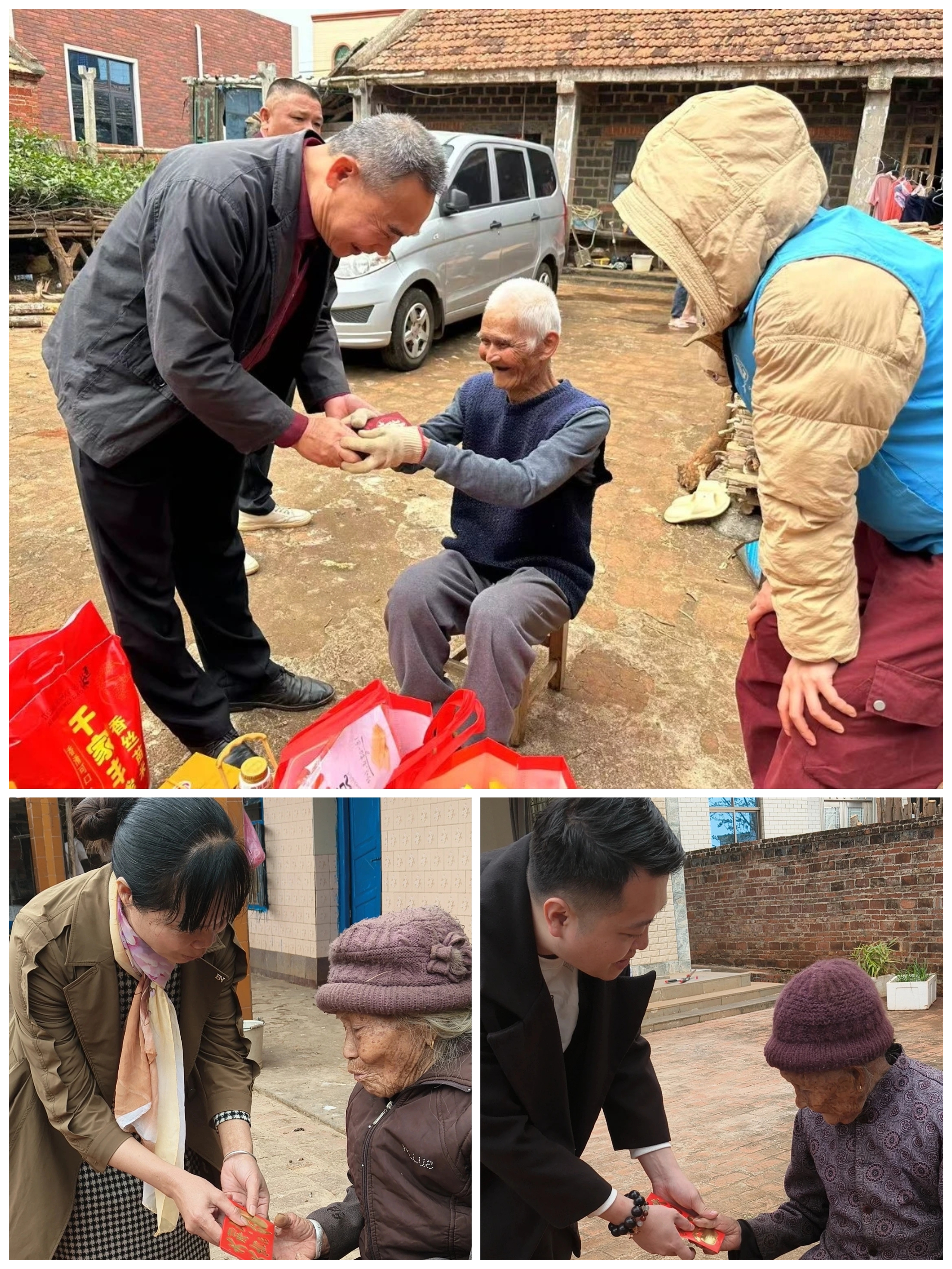 春節(jié)臨近,年味漸濃。為弘揚中華民族孝老愛親傳統美德,營造孝老敬老愛老的良好社會氛圍,1月24日,龍?zhí)伶?zhèn)公共服務辦、龍?zhí)伶?zhèn)社工站聯合龍?zhí)伶?zhèn)商會、龍?zhí)伶?zhèn)個體勞動協會、龍?zhí)伶?zhèn)龍興超市、龍?zhí)伶?zhèn)新世紀幼兒園、龍?zhí)伶?zhèn)益禾堂等22位愛心人士開展“百歲百福 情暖桑榆”春節(jié)百歲老人走訪慰問活動,為全鎮(zhèn)9名百歲老人送去了新春慰問金和慰問品,也送去了黨和政府的關心、社會的溫暖和美好的祝福。