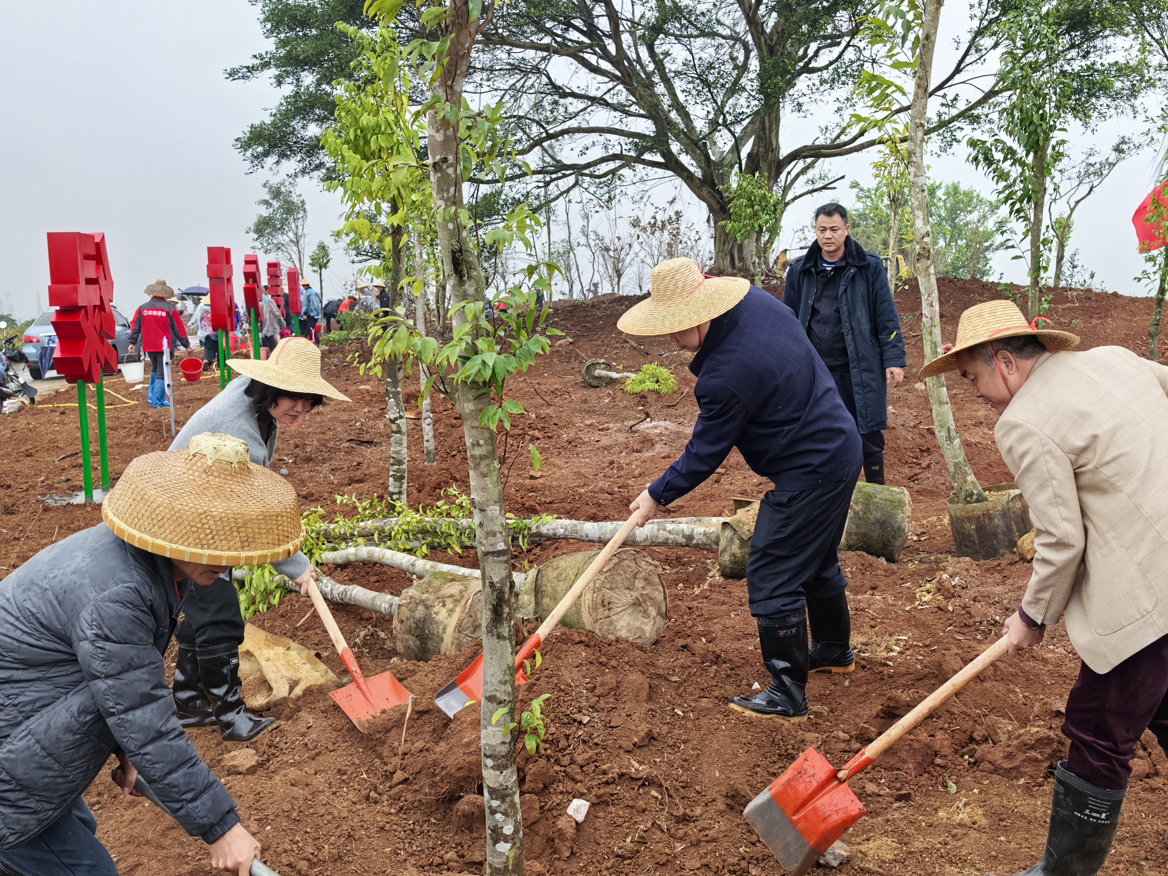 這次植樹(shù)活動(dòng)參與人員達(dá)170人次,共種植樹(shù)苗310株,分別有大葉紫薇、菩提、香樟、沉香等樹(shù)種。在植樹(shù)現(xiàn)場(chǎng),黃旭帶領(lǐng)干部群眾分工合作,有的挖坑,有的扶苗,有的培土,有的澆水,大家緊密配合,干勁十足。經(jīng)過(guò)一番辛勤勞動(dòng),為這片紅土地增添了新綠,成為當(dāng)?shù)匾坏懒聋惖娘L(fēng)景。