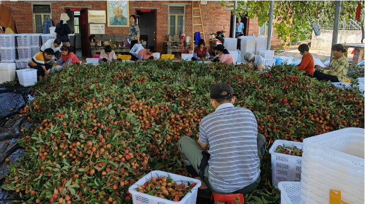 現(xiàn)場,鐵棚下的工人們也正有條不紊地對采摘下來的荔枝進(jìn)行枝椏修剪,并迅速裝箱。一旁的冷鏈車在靜靜等候,準(zhǔn)備將這些新鮮采摘的荔枝通過冷鏈、恒溫運(yùn)輸送往華東五市,讓遠(yuǎn)方的消費(fèi)者也能品嘗到這份來自徐聞的甜蜜。