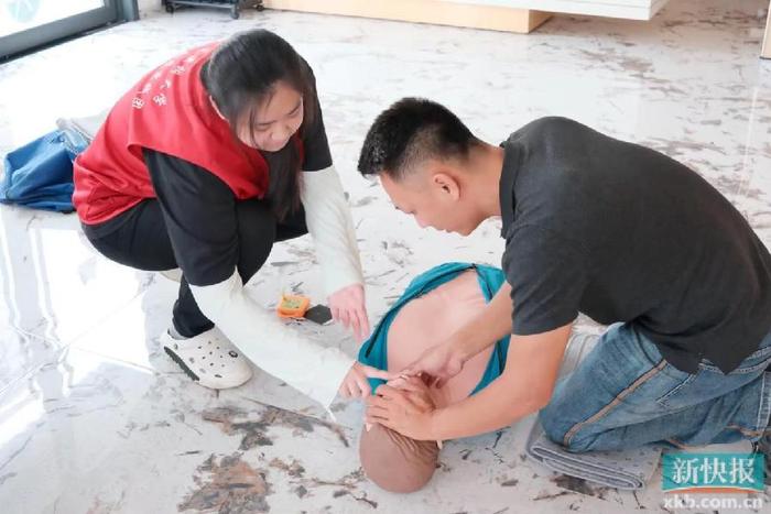 “掌根重疊,雙臂垂直下壓!”“兩指托下頜,仰頭提頦!”“鼻翼一定要像這樣壓實(shí),才能更充分地進(jìn)氣”……進(jìn)行心肺復(fù)蘇一對(duì)一培訓(xùn)時(shí),實(shí)踐團(tuán)成員化身為嚴(yán)謹(jǐn)?shù)膶?dǎo)師,手把手向民宿從業(yè)人員傳授著生命救援的關(guān)鍵——標(biāo)準(zhǔn)胸外按壓。民宿主們積極配合,認(rèn)真學(xué)習(xí),并在成員的指導(dǎo)下,認(rèn)真練習(xí)各個(gè)環(huán)節(jié)的具體操作,按壓動(dòng)作漸趨規(guī)范標(biāo)準(zhǔn)。