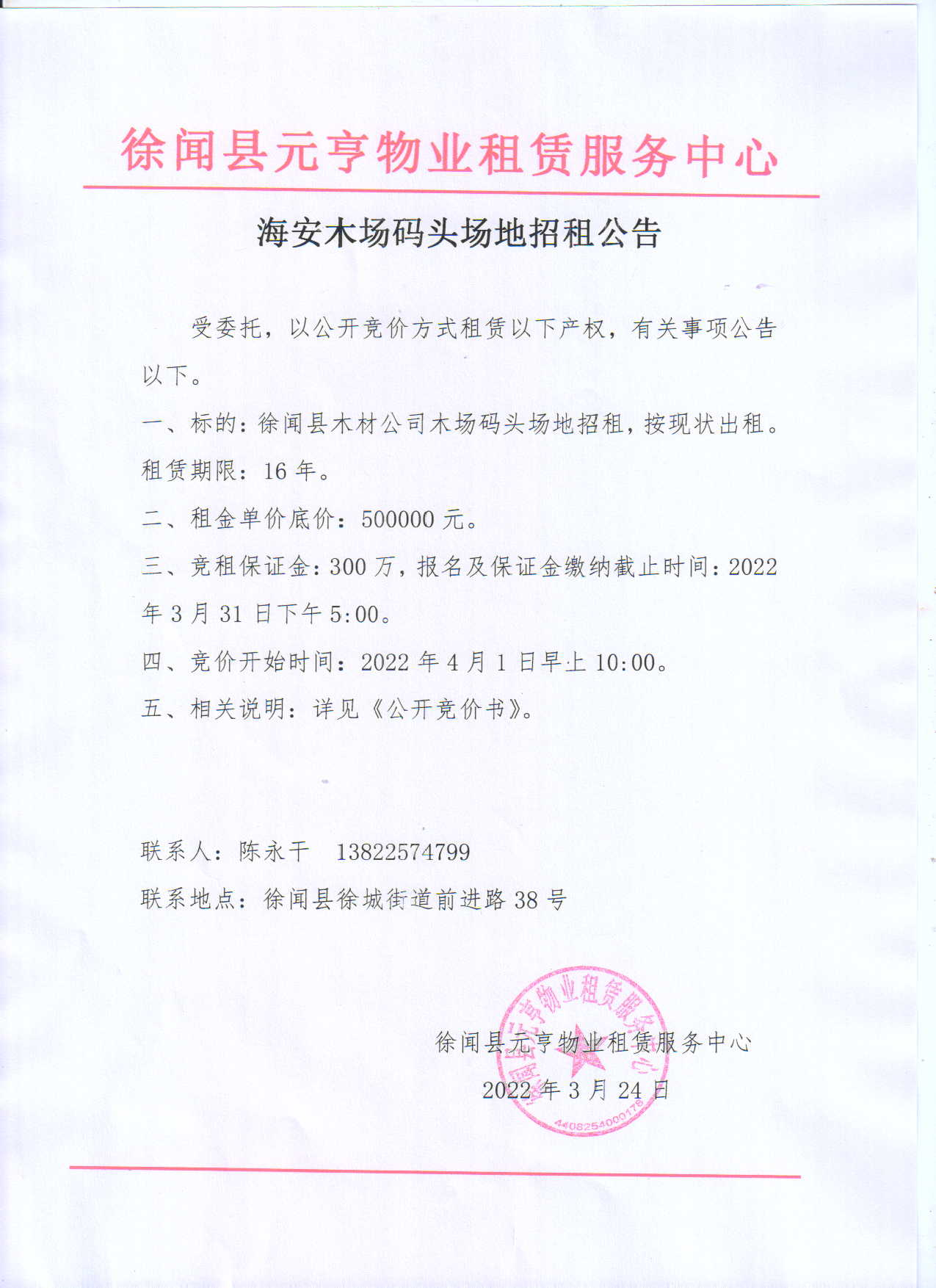 海安木場(chǎng)碼頭場(chǎng)地招租公告