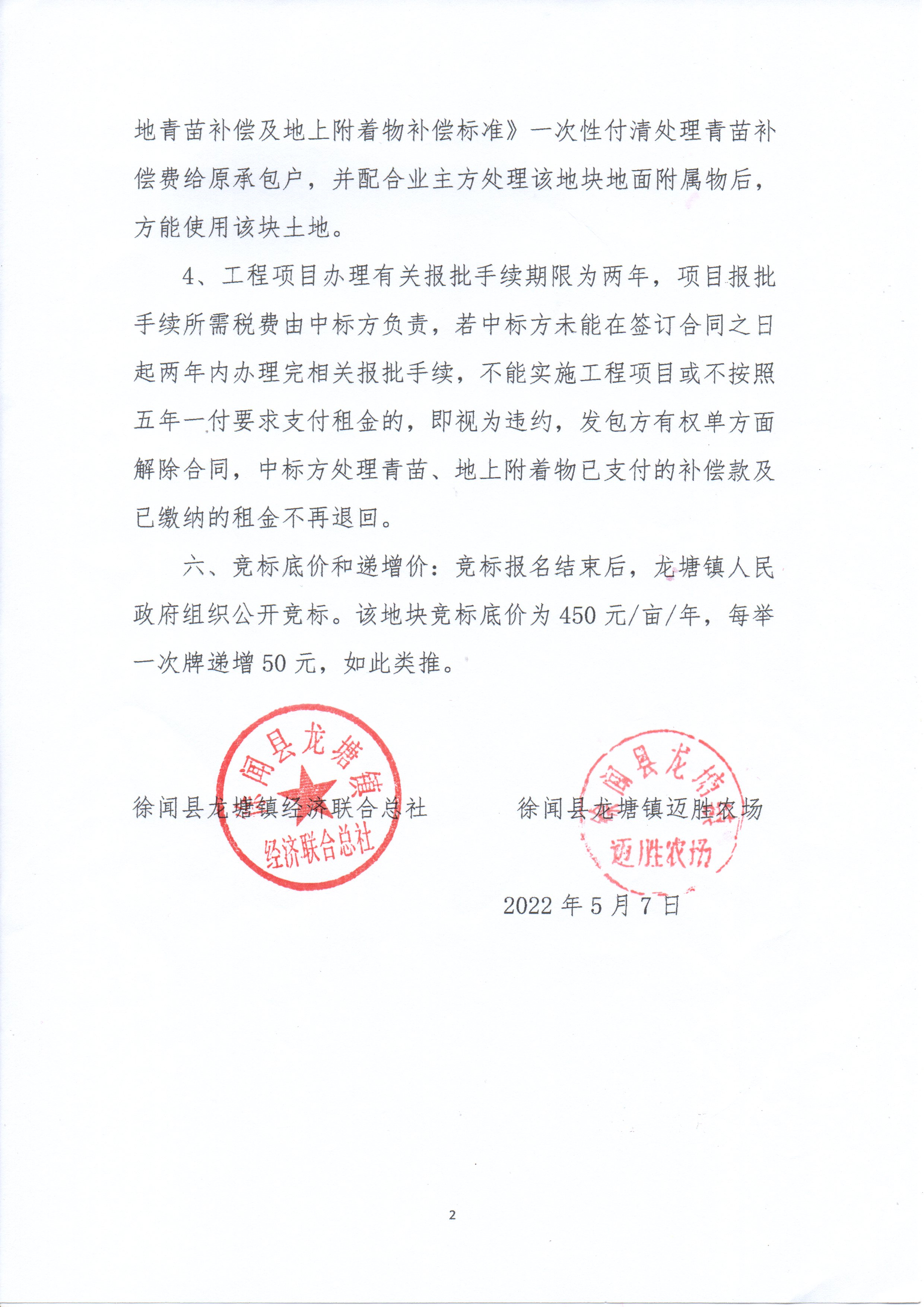 徐聞縣龍?zhí)伶?zhèn)經(jīng)濟(jì)聯(lián)合總社邁勝農(nóng)場新場土地租賃方案