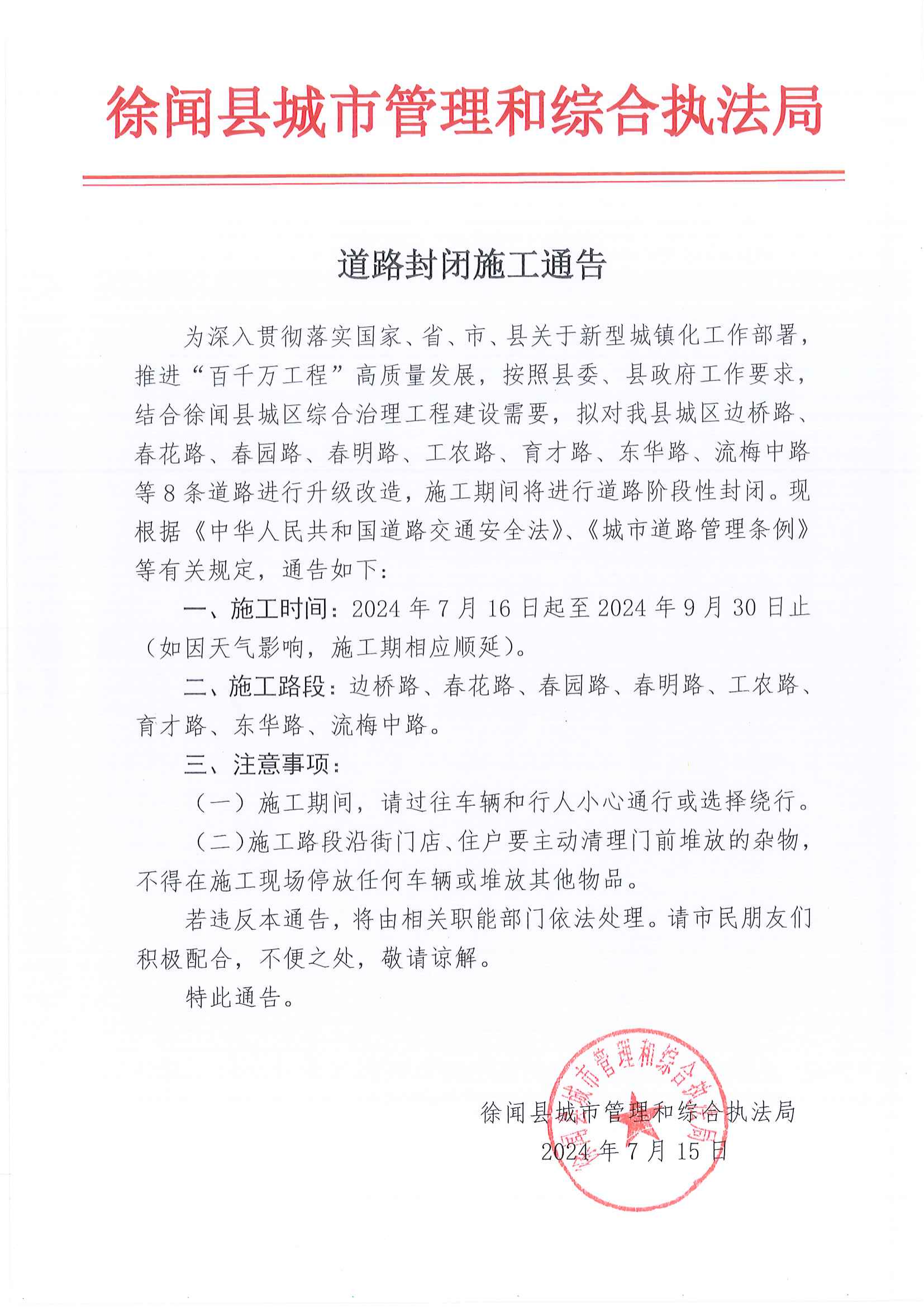 道路封閉施工通告