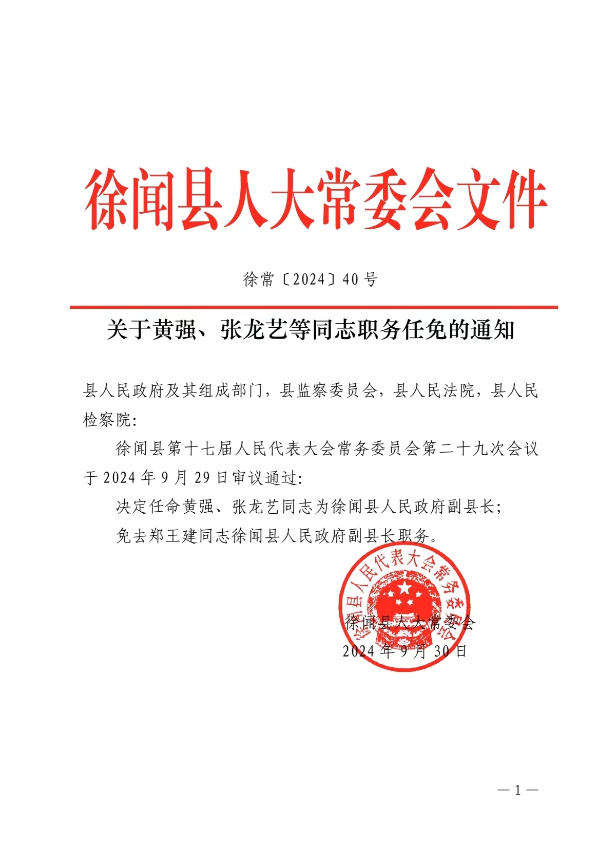 關(guān)于黃強(qiáng)、張龍藝等同志職務(wù)任免的通知