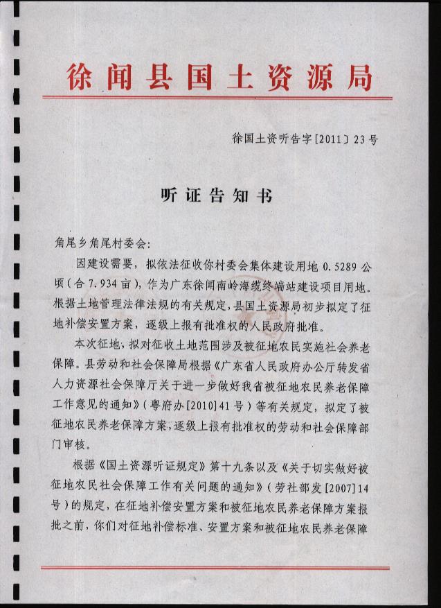 廣東省徐聞南嶺海纜終端站建設(shè)項(xiàng)目聽(tīng)證材料