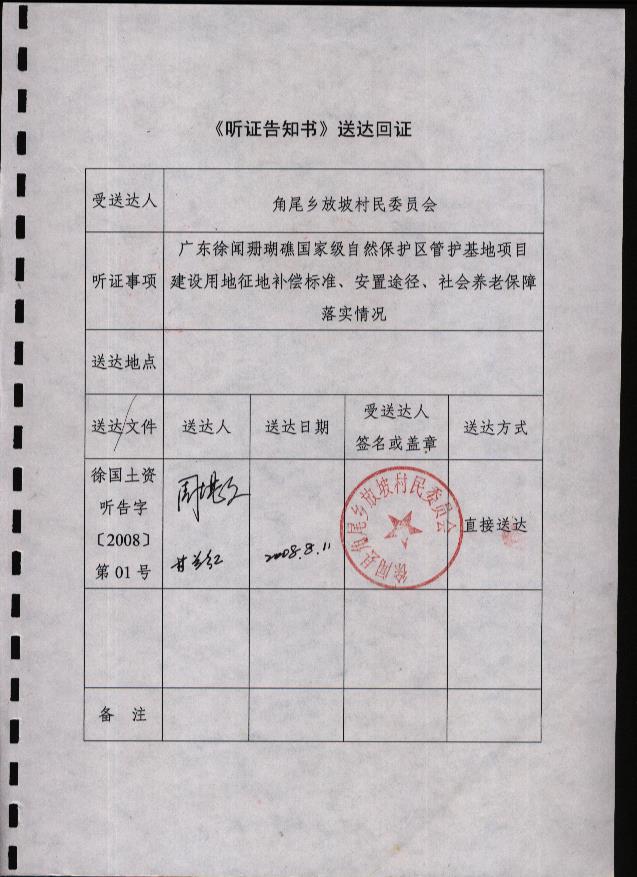 廣東徐聞珊瑚礁國家級自然保護區(qū)管護基地項目建設(shè)用地聽證材料