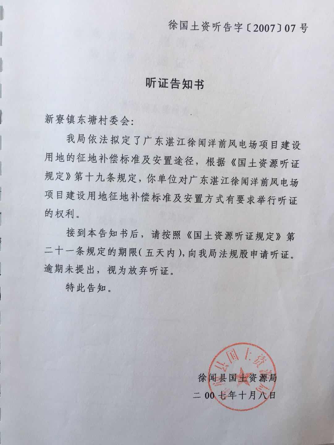 廣東湛江徐聞洋前風(fēng)電場(chǎng)項(xiàng)目建設(shè)用地“”聽證材料“”