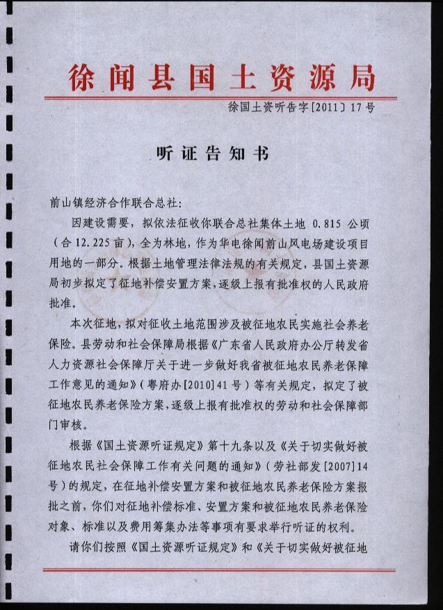 華電徐聞前山風(fēng)電場(chǎng)項(xiàng)目征地聽證材料