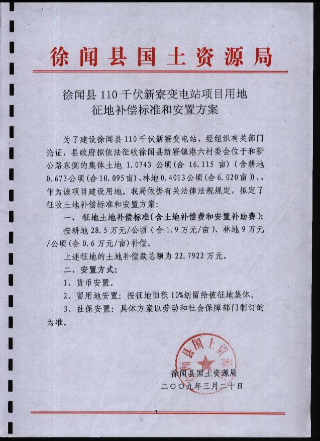 徐聞縣110千伏新寮變電站項目征地聽證材料