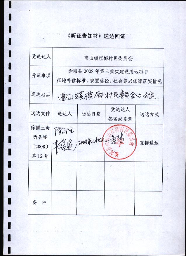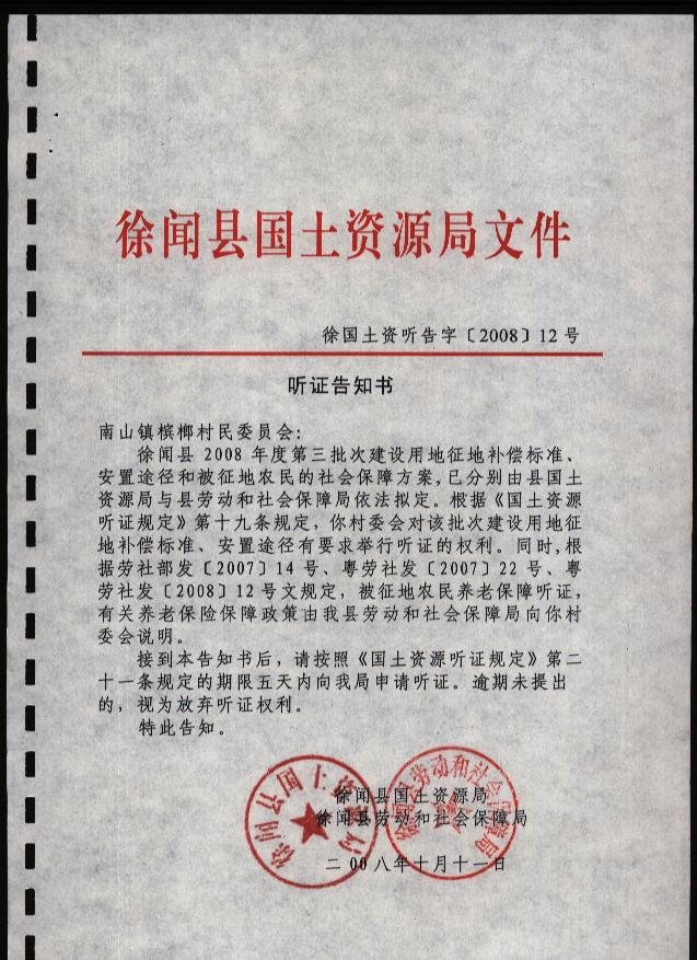 徐聞縣2008年度第三批次“聽(tīng)證材料”