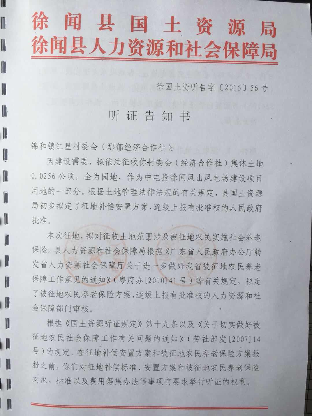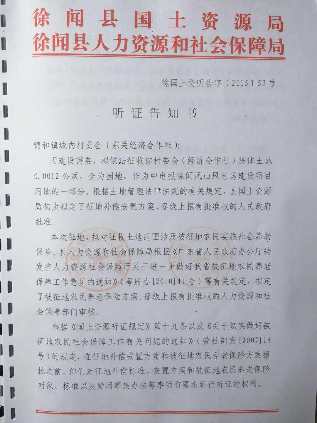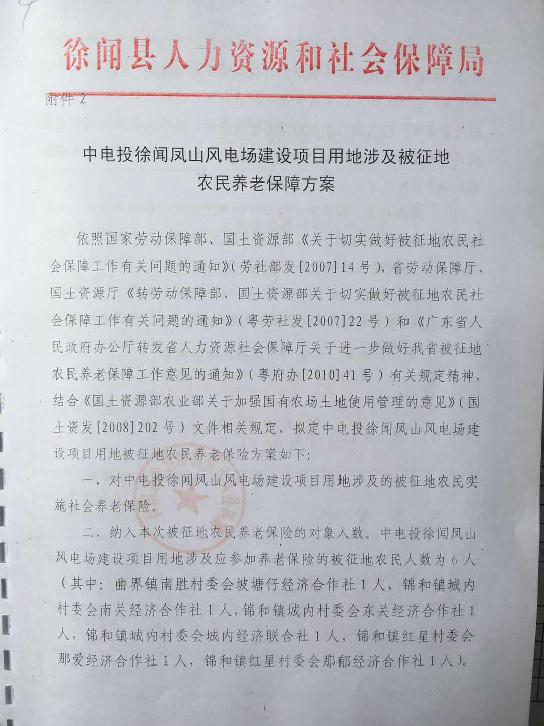 中電投徐聞鳳山風(fēng)電場建設(shè)項目用地聽證材料