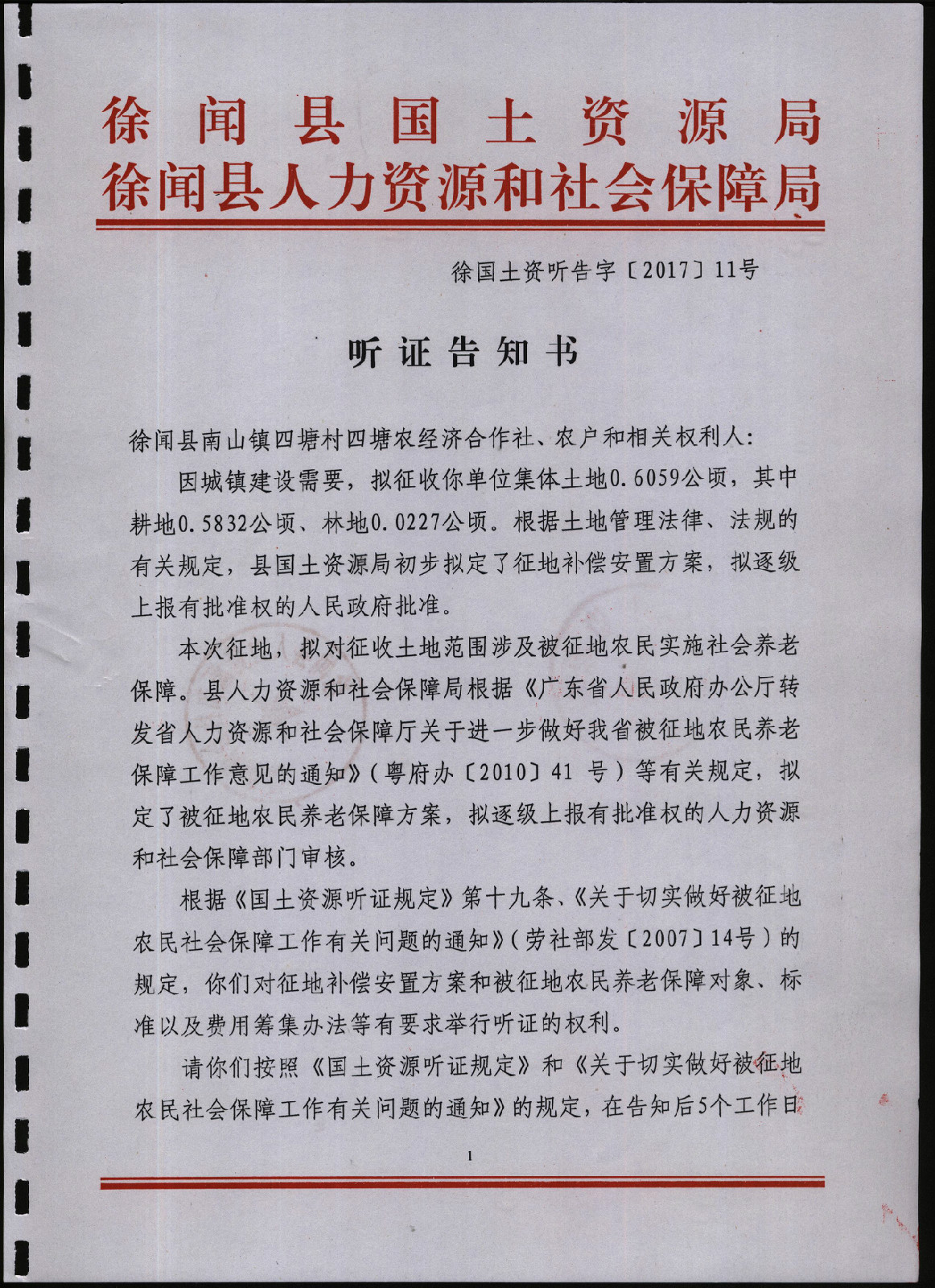 徐聞縣2017年度第二批次城鎮(zhèn)建設(shè)用地'聽證材料'