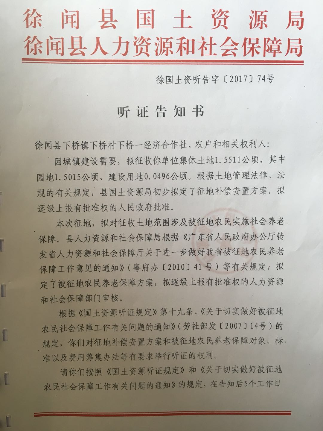 徐聞縣下橋鎮(zhèn)2017年度第四批次城鎮(zhèn)建設(shè)用地聽證材料