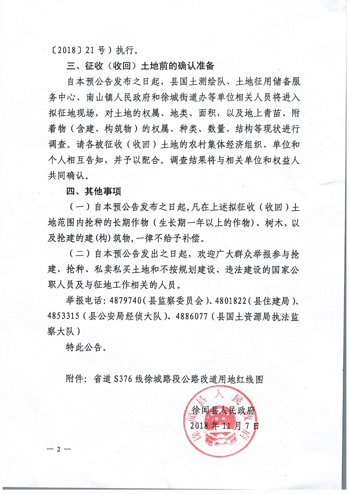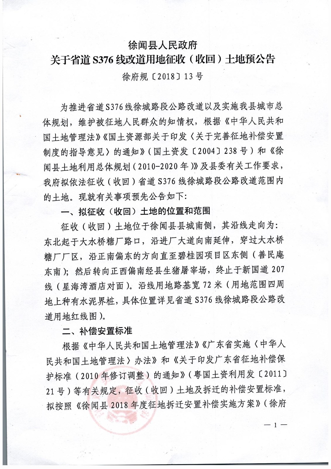 徐聞縣人民政府關(guān)于省道S376線改道用地征收(收回)土地預(yù)公告