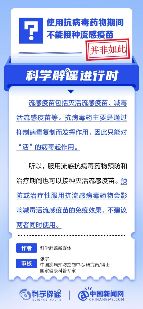 使用抗病毒藥物期間,不能接種流感疫苗?