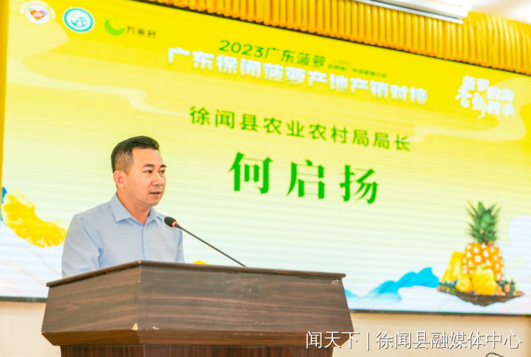 會(huì)上,徐聞縣農(nóng)業(yè)農(nóng)村局局長(zhǎng)何啟揚(yáng)匯報(bào)了2023年菠蘿營銷工作情況。湛江市農(nóng)業(yè)農(nóng)村局有關(guān)領(lǐng)導(dǎo)希望本次活動(dòng)能夠進(jìn)一步促進(jìn)產(chǎn)區(qū)與銷區(qū)的深入合作,助力徐聞菠蘿高質(zhì)量發(fā)展。