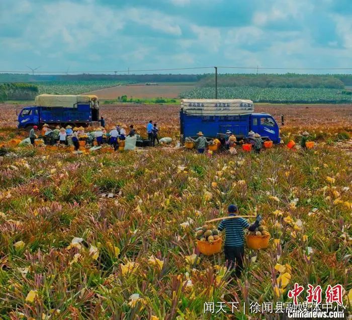 中新網(wǎng)湛江3月27日電 (記者 程景偉)中國菠蘿看廣東,廣東菠蘿看徐聞。記者近日赴廣東湛江市徐聞縣探訪“菠蘿的海”,這里的菠蘿果園一望無際,果農(nóng)們正抓緊時間采摘菠蘿,將一筐筐菠蘿打包裝車,運(yùn)往外地銷售。 廣東省湛江市徐聞縣位于中國大陸的最南端。有著“中國菠蘿第一縣”美譽(yù)的徐聞,菠蘿種植歷史上百年,連片的菠蘿被譽(yù)為“菠蘿的海”。目前,徐聞菠蘿種植面積達(dá)35萬畝,常年產(chǎn)量超70萬噸,面積及產(chǎn)量超過全國的1/3。也就是說,中國每3顆菠蘿,就有1顆產(chǎn)自徐聞。 據(jù)徐聞縣農(nóng)業(yè)農(nóng)村局局長何啟揚(yáng)介紹,今年徐聞菠蘿產(chǎn)量預(yù)計約79.6萬噸,目前上市銷售量已近38萬噸,其中銷往批發(fā)市場占80%,商超占15%,電商平臺占5%。銷售區(qū)域以省外為主,占比約70%,銷售區(qū)域主要為山東、浙江、湖南等,廣東省內(nèi)占30%、以珠三角為主。 近幾年來,徐聞菠蘿賣得好,價格穩(wěn)定,田頭收購均價達(dá)到每斤1.5元,穩(wěn)住了農(nóng)民“錢袋子”,實現(xiàn)增產(chǎn)增收?!敖陙恚炻劜ぬ}價格穩(wěn)定,對產(chǎn)業(yè)發(fā)展有信心。除去人工,一畝巴厘菠蘿能賺2000多元。”果農(nóng)何景煥稱,不少人租地種菠蘿,導(dǎo)致當(dāng)?shù)赝恋啬曜饨鸶哌_(dá)每畝1800元。
