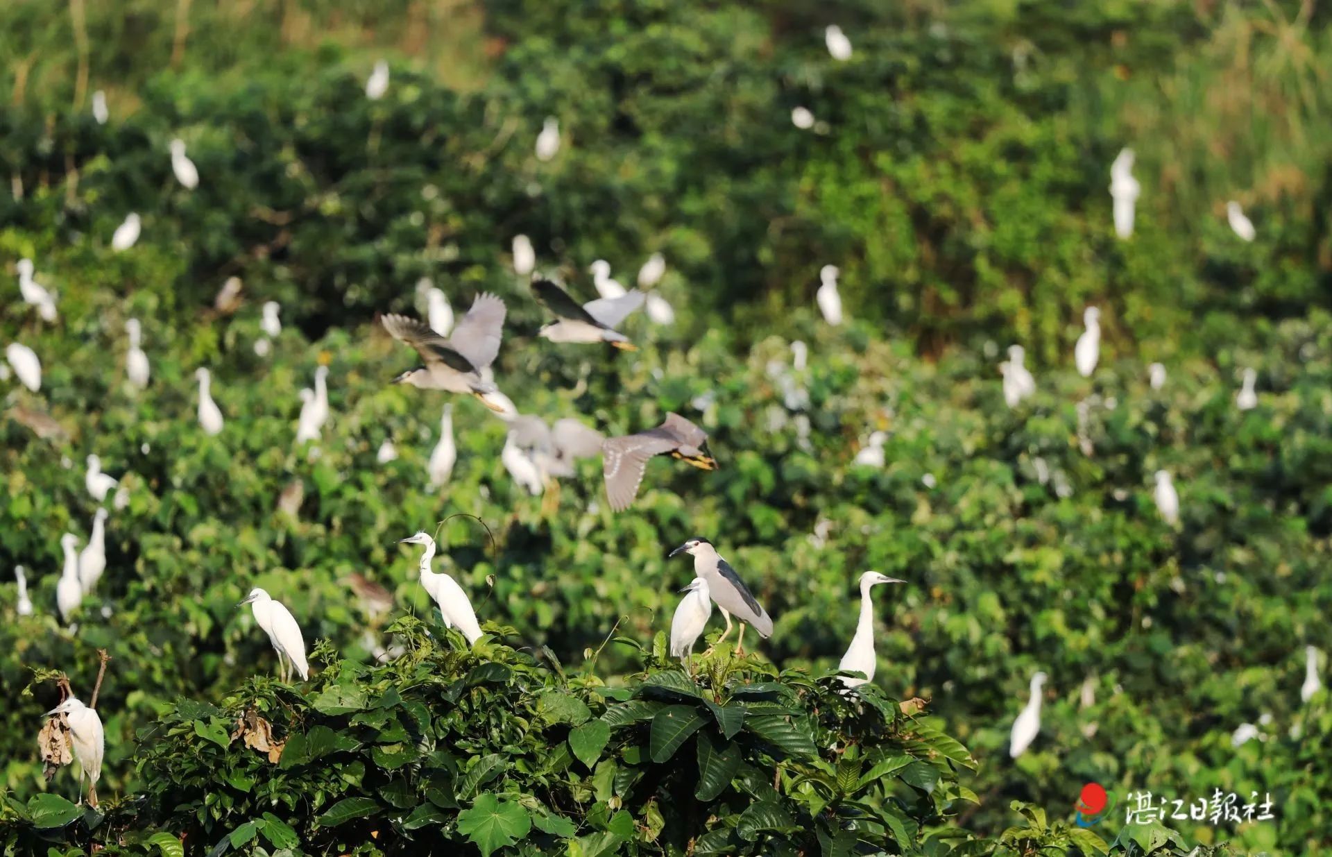 雷州九龍山紅樹(shù)林國(guó)家濕地公園,候鳥(niǎo)立滿枝頭。記者 李忠 攝