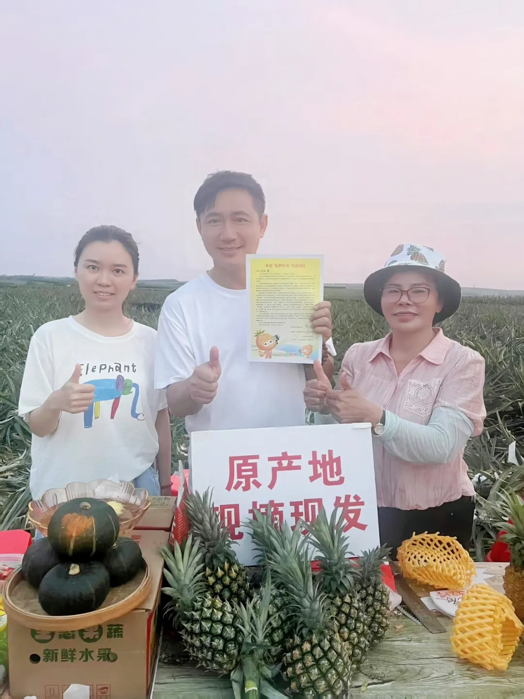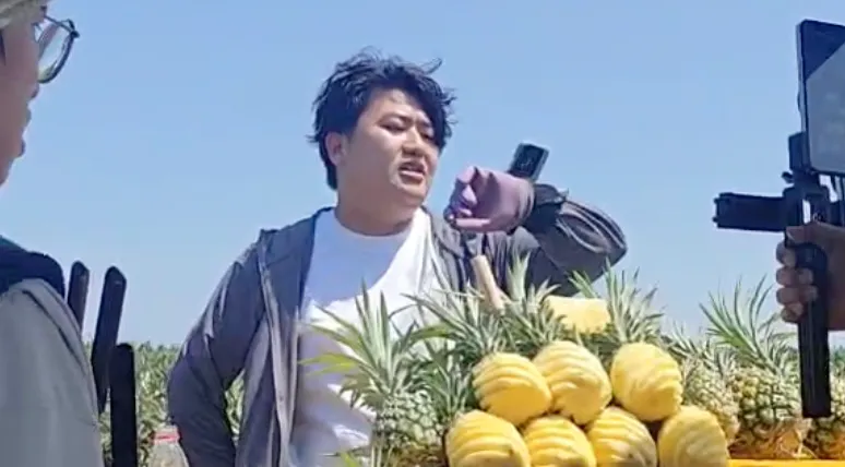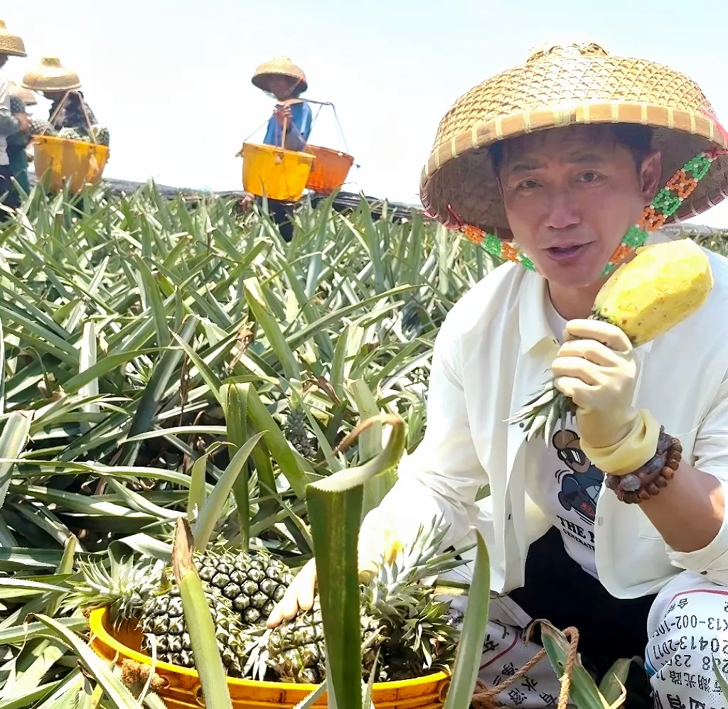 另一邊,《外來(lái)媳婦本地郎》"三哥"扮演者彭新智不僅開(kāi)展帶貨直播,還躬身體驗(yàn)菠蘿采摘,感受果農(nóng)豐收的喜悅。