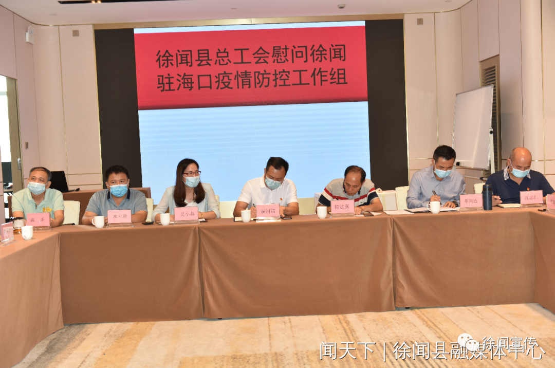 在工作組駐點酒店,慰問團(tuán)一行與徐聞縣駐海口疫情防控工作領(lǐng)導(dǎo)小組組長游河清、常務(wù)副組長鄧圖造及工作組有關(guān)同志座談,聽取了有關(guān)工作情況匯報,對他們在關(guān)鍵時刻挺身而出的擔(dān)當(dāng)作為表示感謝,希望大家在做好疫情防控工作的同時,更要注意自身的防護(hù)。