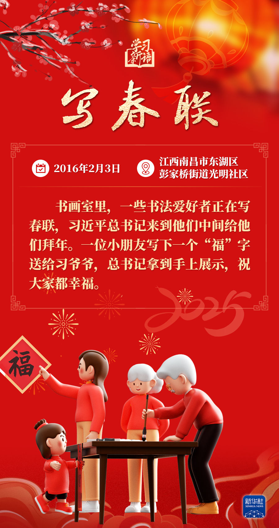 春節(jié)是中華民族的傳統(tǒng)節(jié)日。每當(dāng)春節(jié)來臨之際,習(xí)近平總書記都會走到群眾之中,送祝福、貼“?!弊?、賞民俗……和大家一起感受豐富多彩的年俗文化。