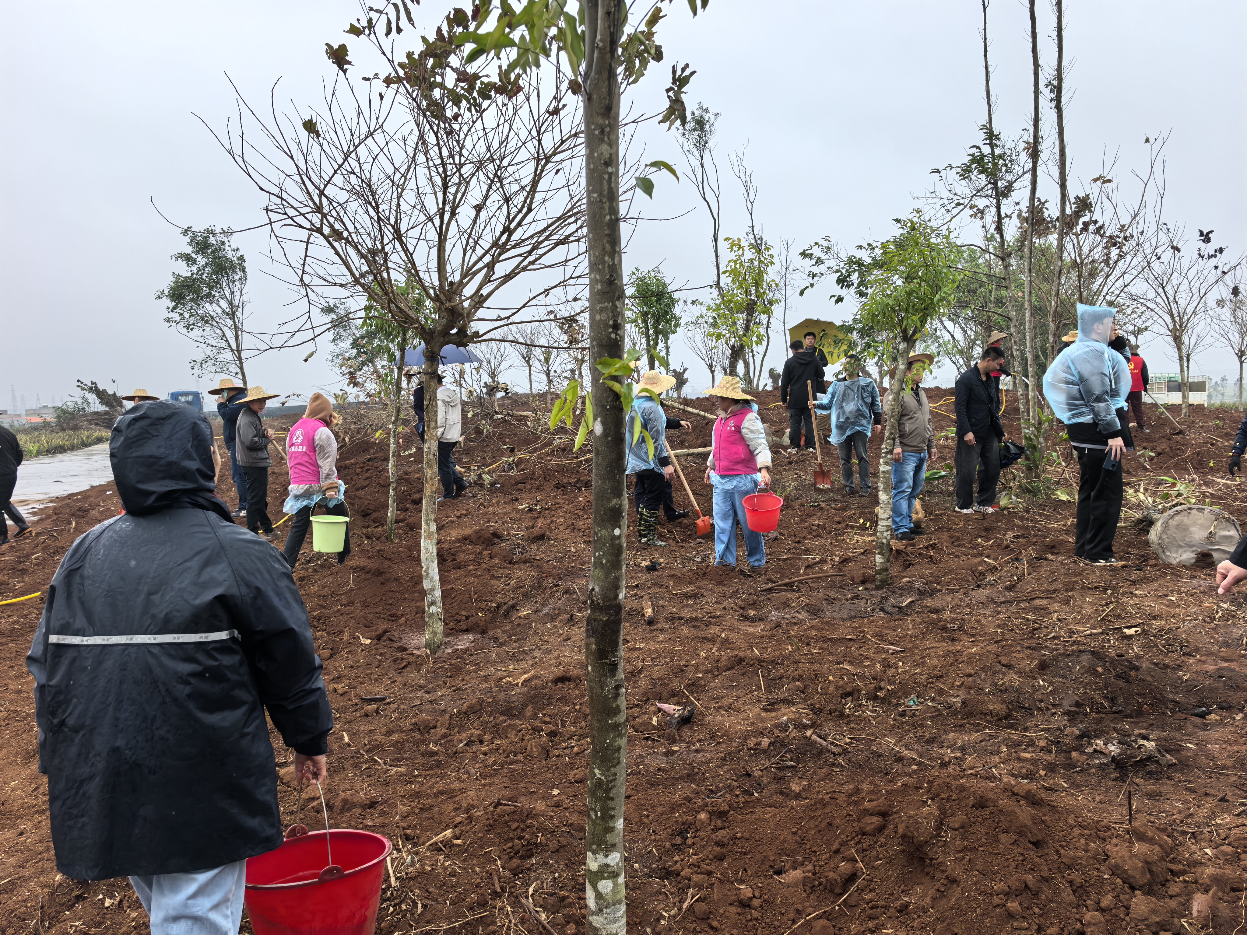 這次植樹(shù)活動(dòng)參與人員達(dá)170人次,共種植樹(shù)苗310株,分別有大葉紫薇、菩提、香樟、沉香等樹(shù)種。在植樹(shù)現(xiàn)場(chǎng),黃旭帶領(lǐng)干部群眾分工合作,有的挖坑,有的扶苗,有的培土,有的澆水,大家緊密配合,干勁十足。經(jīng)過(guò)一番辛勤勞動(dòng),為這片紅土地增添了新綠,成為當(dāng)?shù)匾坏懒聋惖娘L(fēng)景。