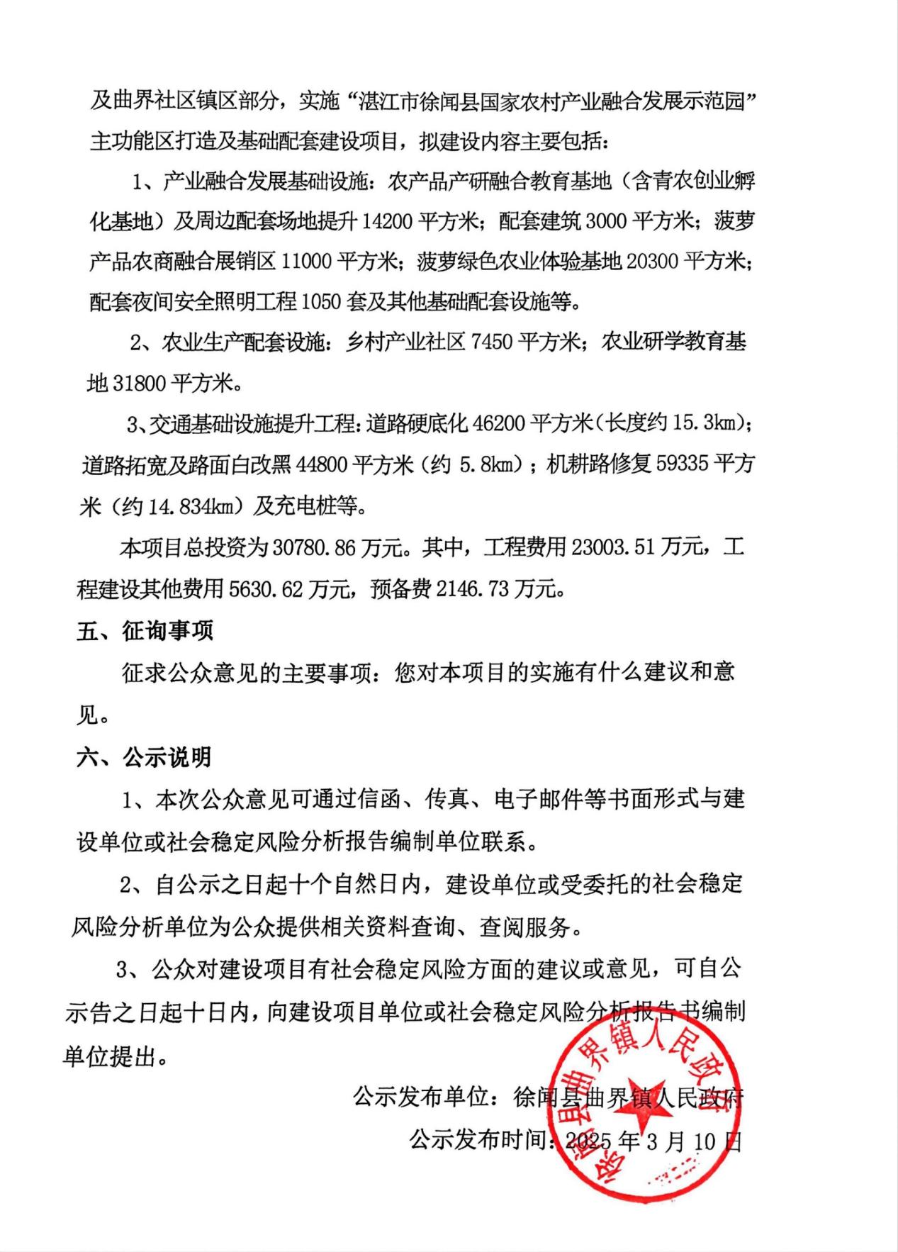 徐聞(曲界)菠蘿產(chǎn)業(yè)融合發(fā)展示范園區(qū)建設(shè)項目社會穩(wěn)定風(fēng)險分析征求公眾意見公示