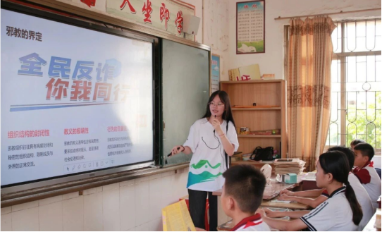 7月1日,龍?zhí)伶?zhèn)團委聯(lián)合龍?zhí)伶?zhèn)新時代文明實踐所、鎮(zhèn)工會、鎮(zhèn)婦聯(lián)、湛江科技學院獵鷹三下鄉(xiāng)突擊隊到龍?zhí)林行男W開展反邪教宣講活動。本次活動宣講人由大學生陳舒婷同學擔任,她從邪教的定義、邪教的危害、反邪教法律法規(guī)、反邪教的社會教育、防范與應對、國際合作等六方面進行闡述,向龍?zhí)伶?zhèn)的小朋友普及邪教的危害。