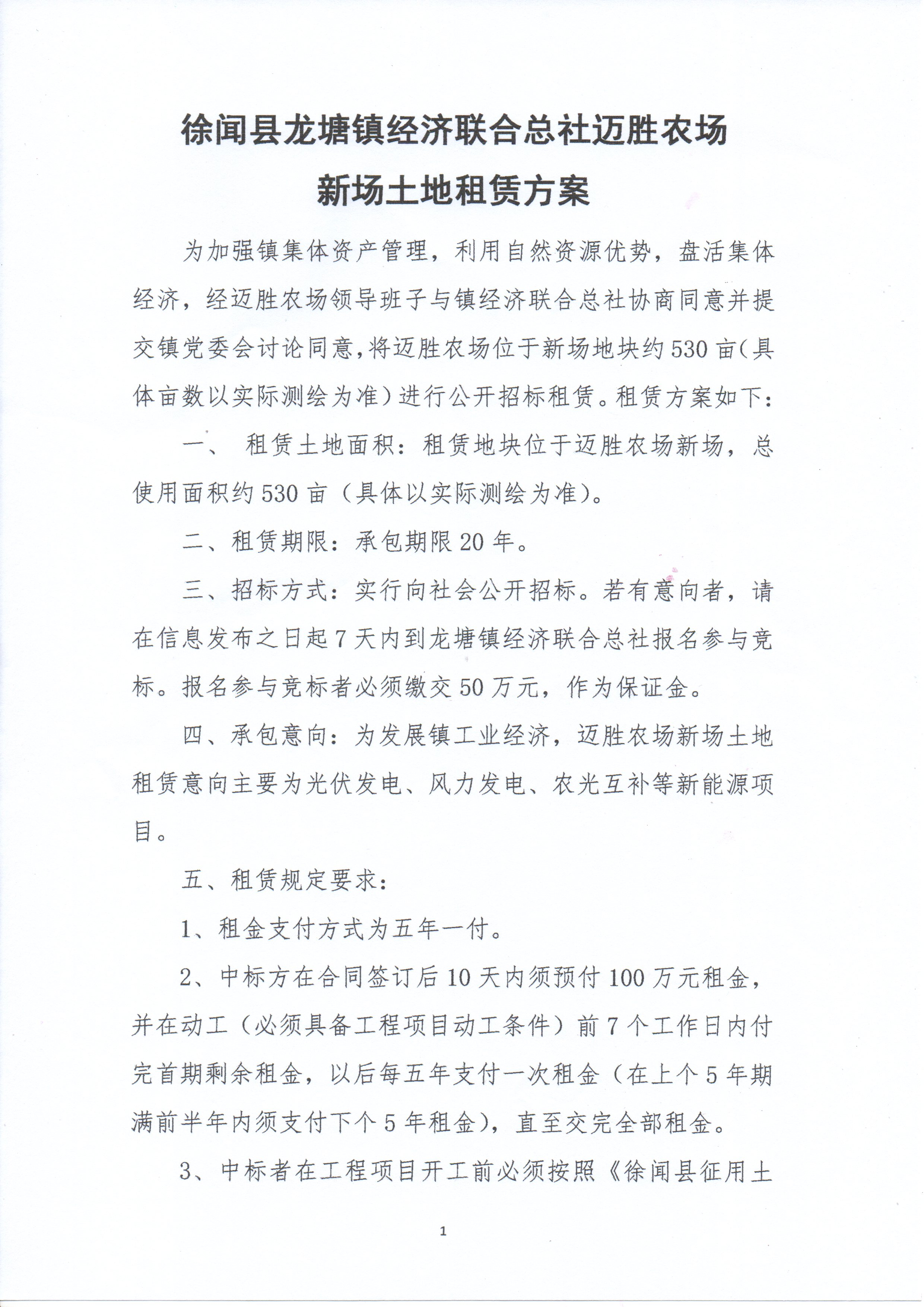 徐聞縣龍?zhí)伶?zhèn)經(jīng)濟(jì)聯(lián)合總社邁勝農(nóng)場新場土地租賃方案