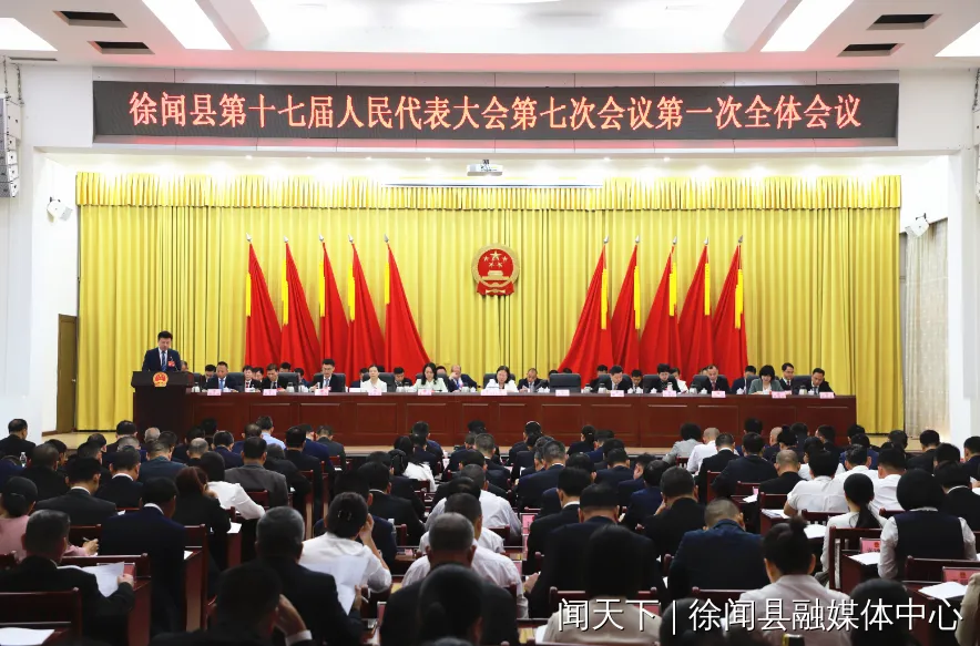 4月15日上午,徐聞縣第十七屆人民代表大會第七次會議在徐聞縣會議中心開幕??h委書記羅紅霞主持會議??h委副書記、縣長張方明代表徐聞縣人民政府向大會作政府工作報告??h人大常委會黨組書記、主任李小軍代表徐聞縣人大常委會作工作報告。