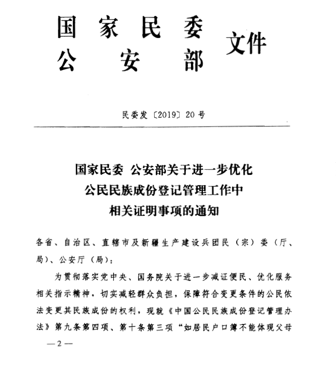國家民委 公安部關(guān)于進一步優(yōu)化公民民族成分登記管理工作中相關(guān)證明事項的通知