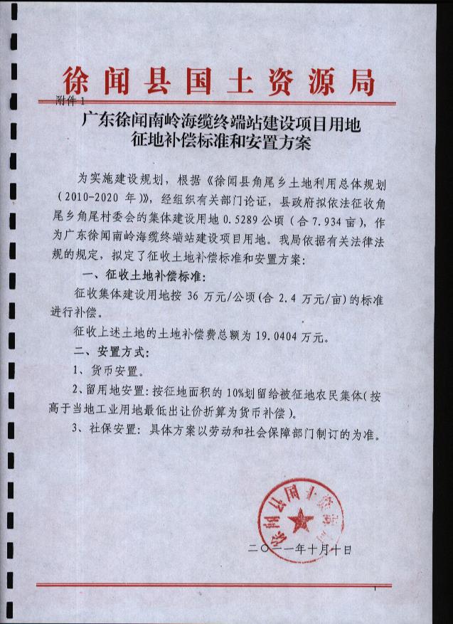 廣東省徐聞南嶺海纜終端站建設(shè)項(xiàng)目聽(tīng)證材料