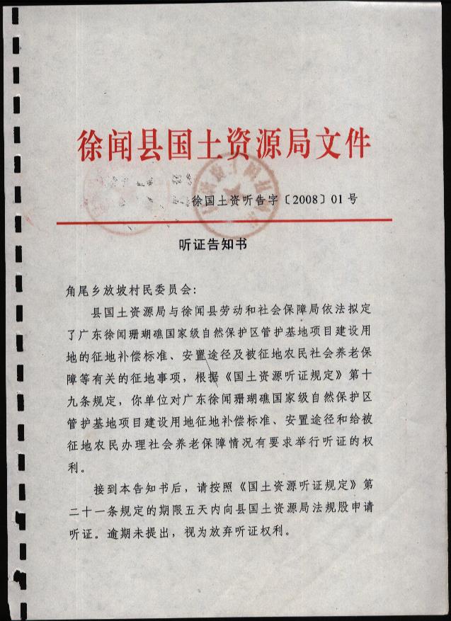廣東徐聞珊瑚礁國家級自然保護區(qū)管護基地項目建設(shè)用地聽證材料