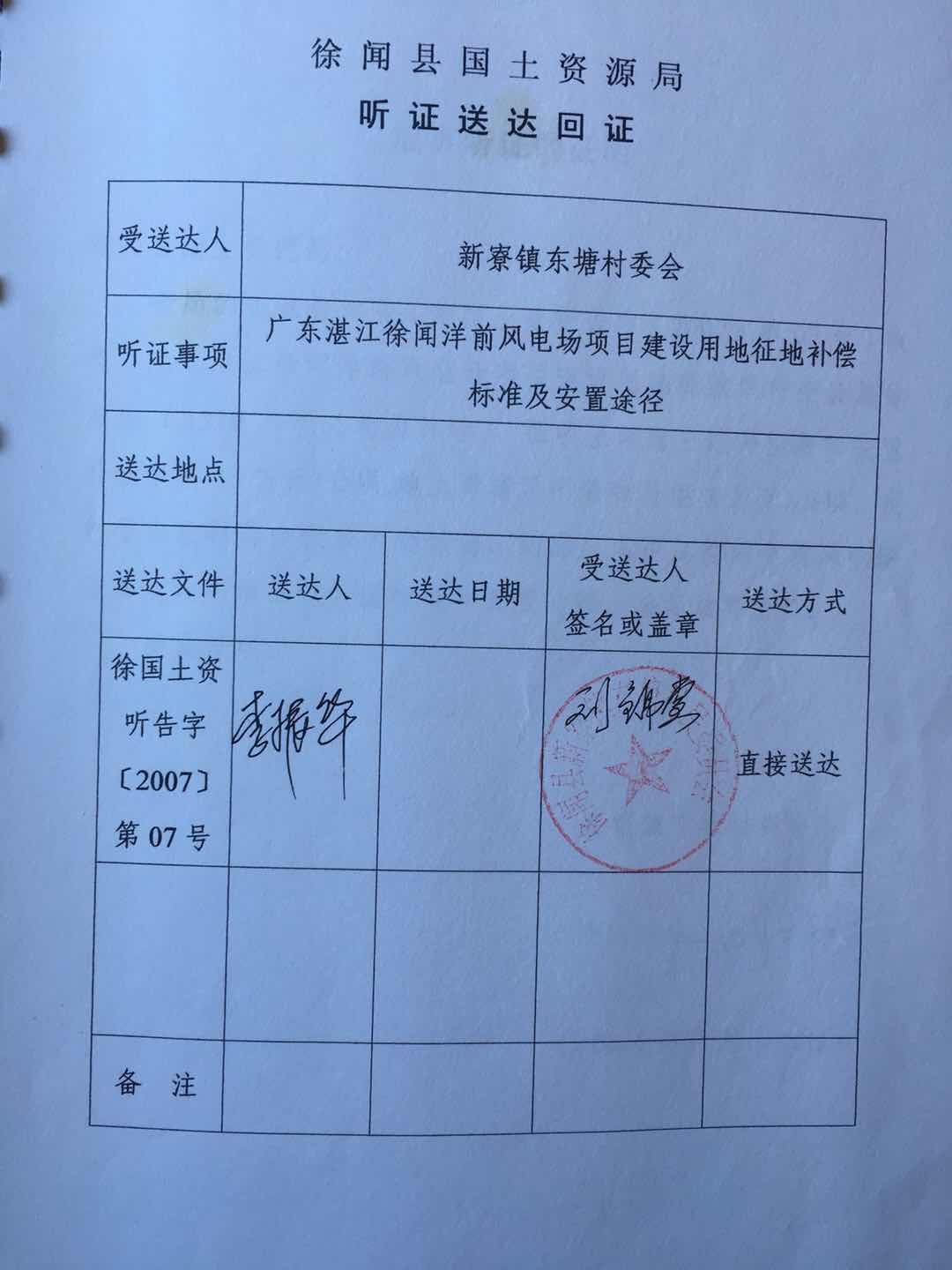 廣東湛江徐聞洋前風(fēng)電場(chǎng)項(xiàng)目建設(shè)用地“”聽證材料“”