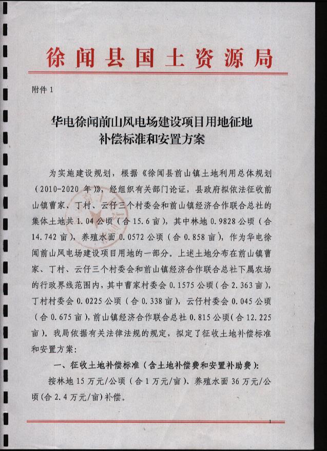 華電徐聞前山風(fēng)電場(chǎng)項(xiàng)目征地聽證材料