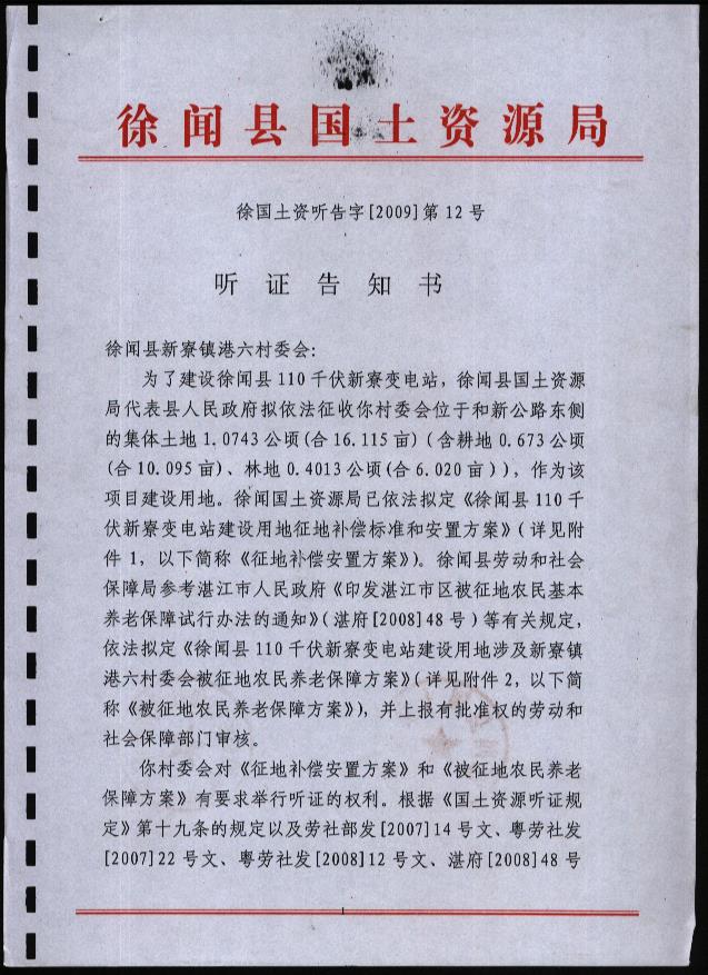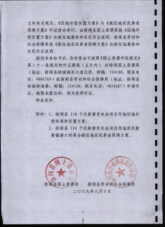徐聞縣110千伏新寮變電站項目征地聽證材料