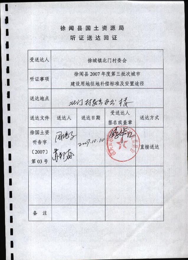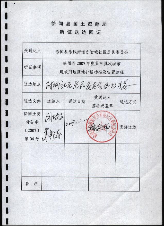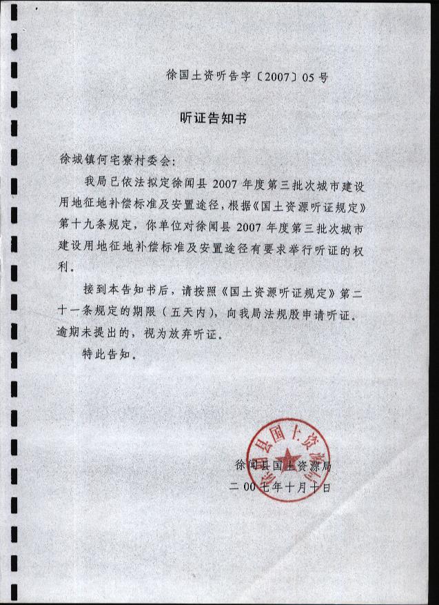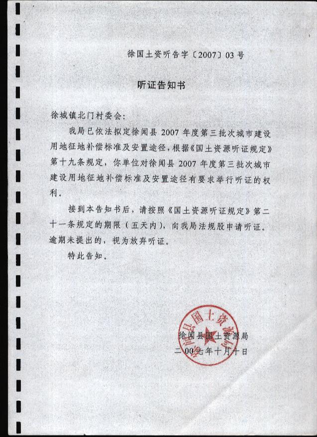 徐聞縣2007年度第三批次“聽(tīng)證材料”