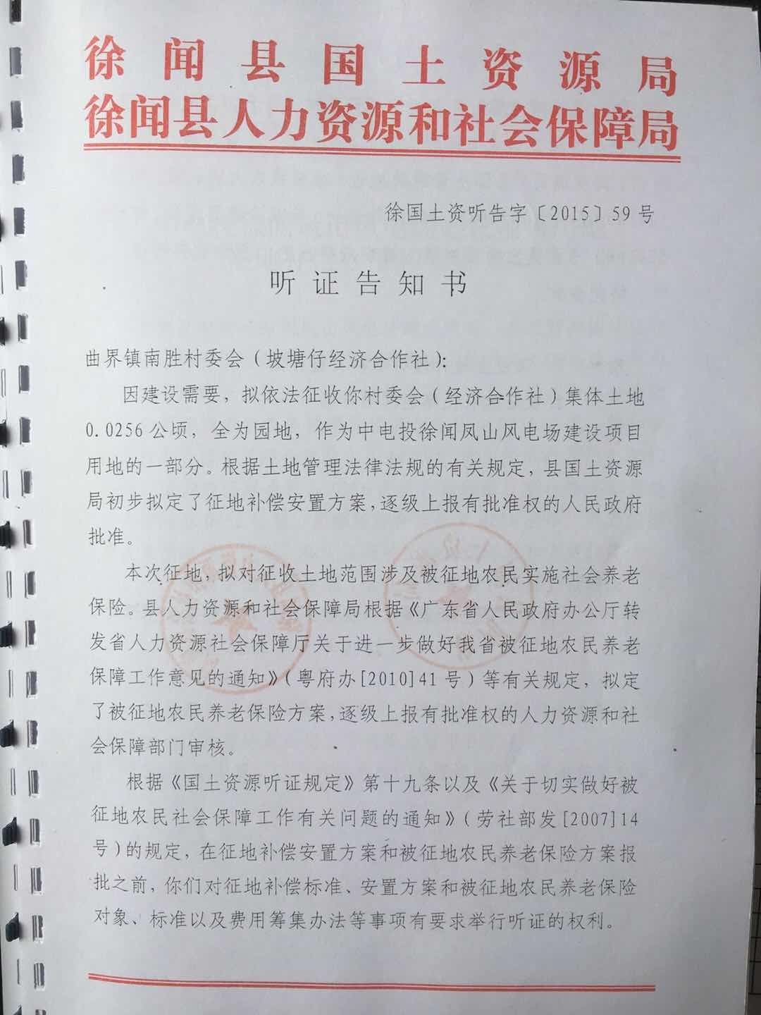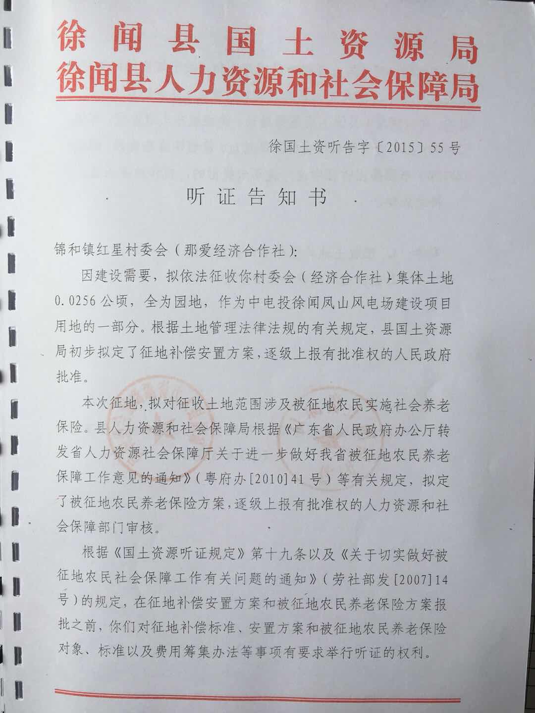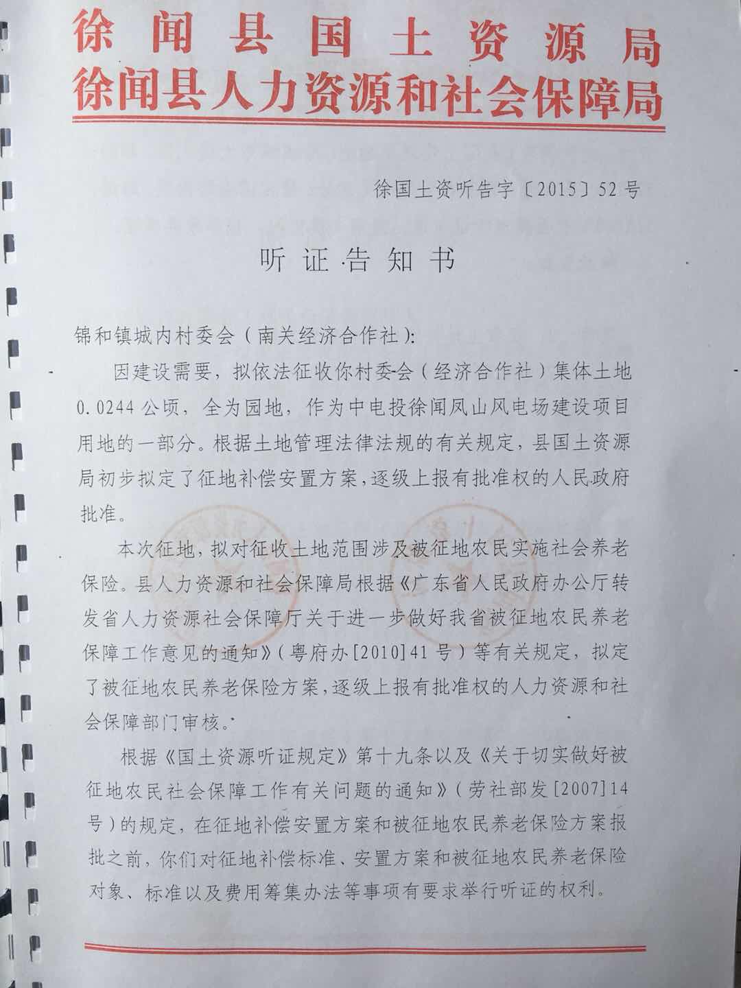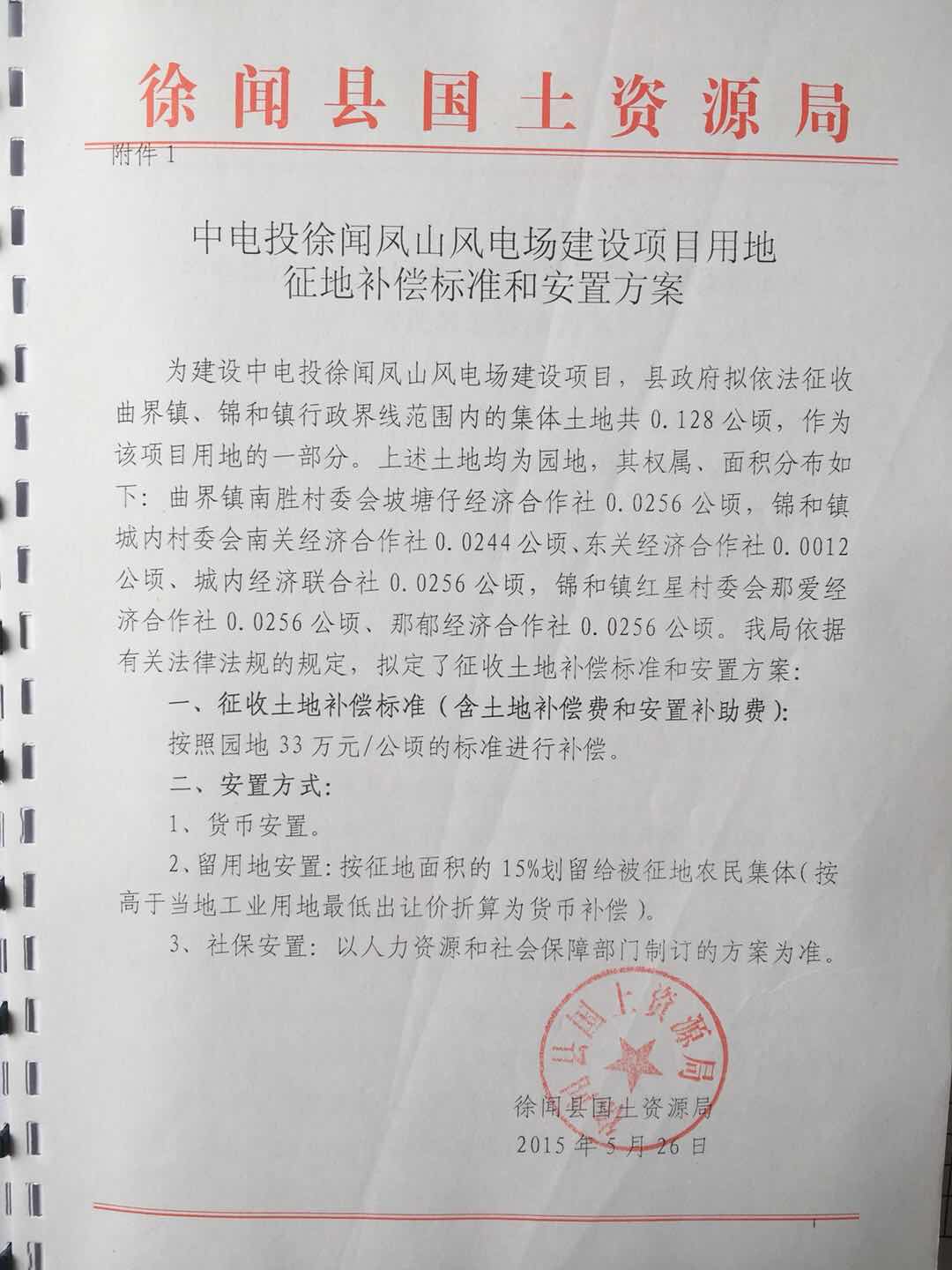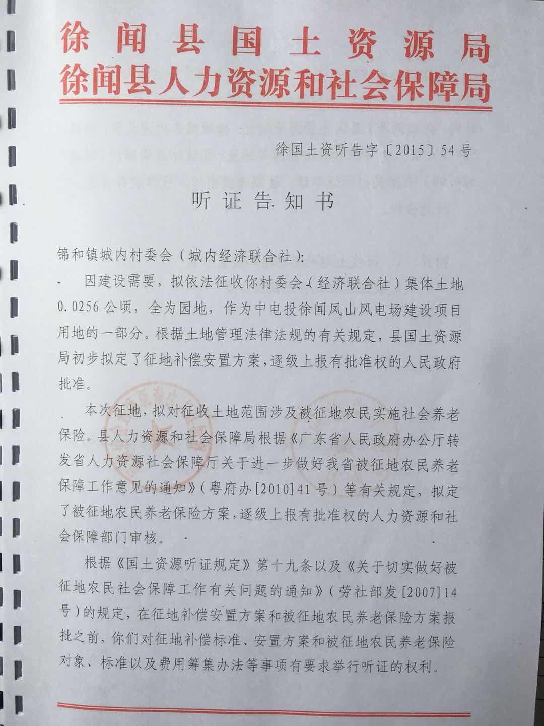 中電投徐聞鳳山風(fēng)電場建設(shè)項目用地聽證材料