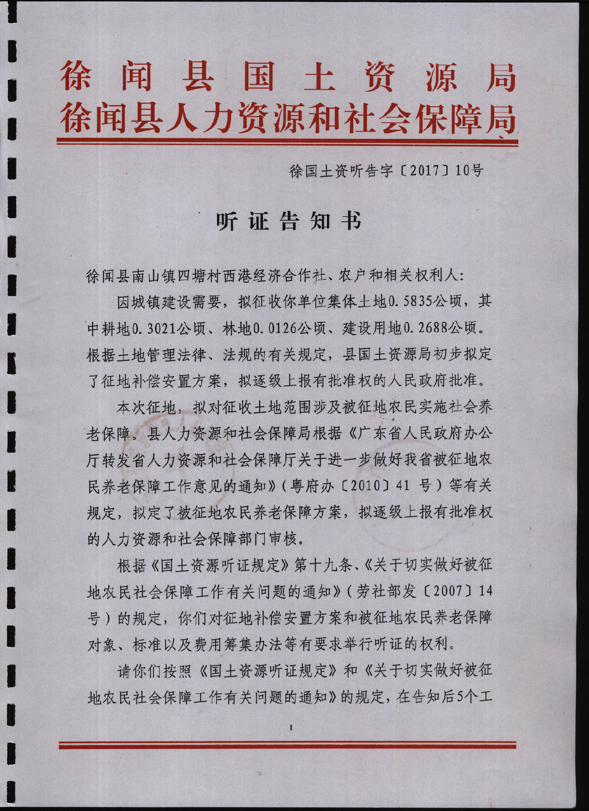 徐聞縣2017年度第二批次城鎮(zhèn)建設(shè)用地'聽證材料'