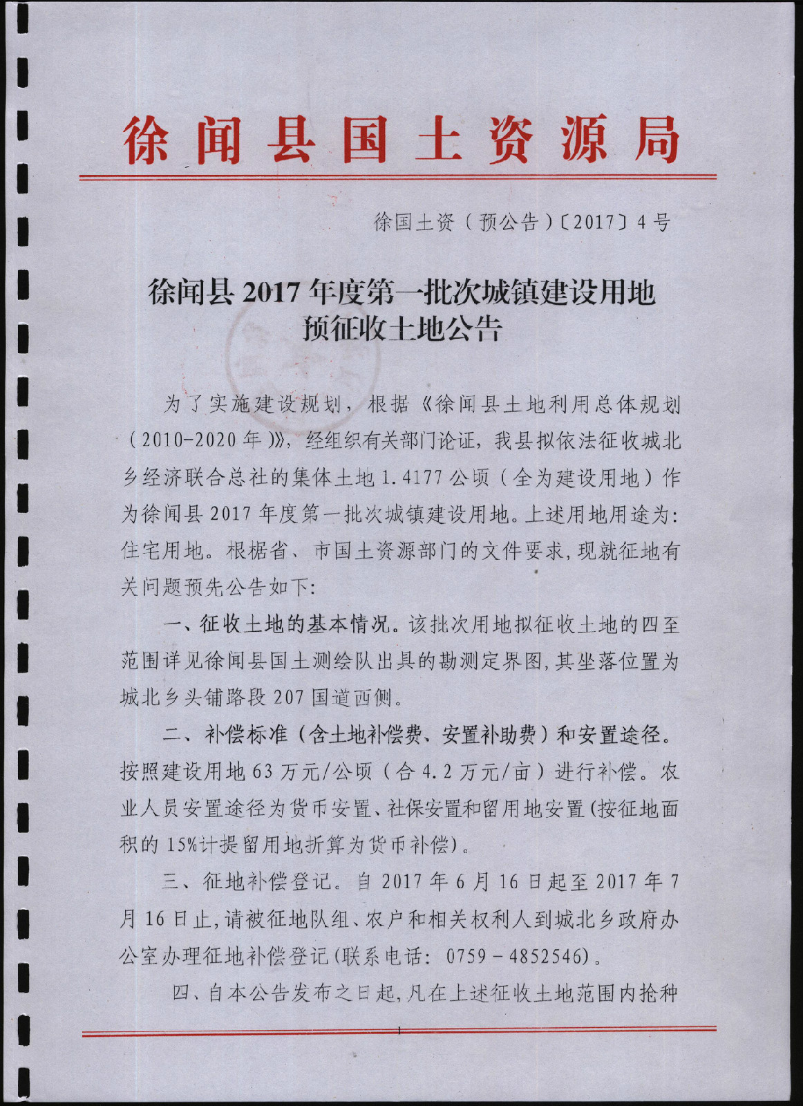 徐聞縣2017年度第一批次“征地預(yù)公告”