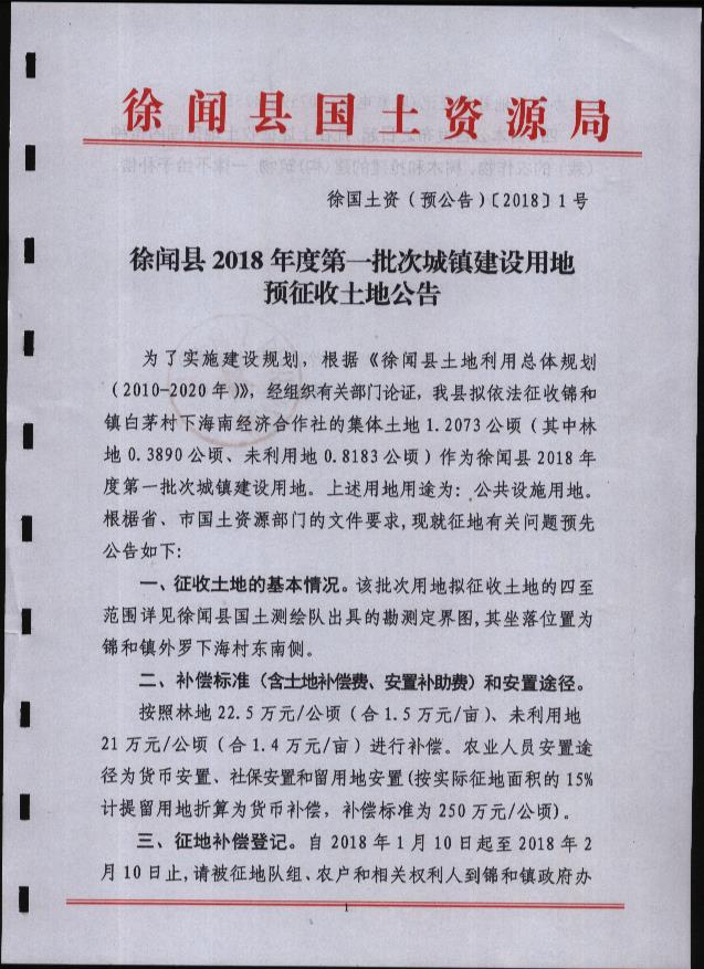 徐聞縣2018年度第一批次城鎮(zhèn)建設(shè)用地“征地預(yù)公告”